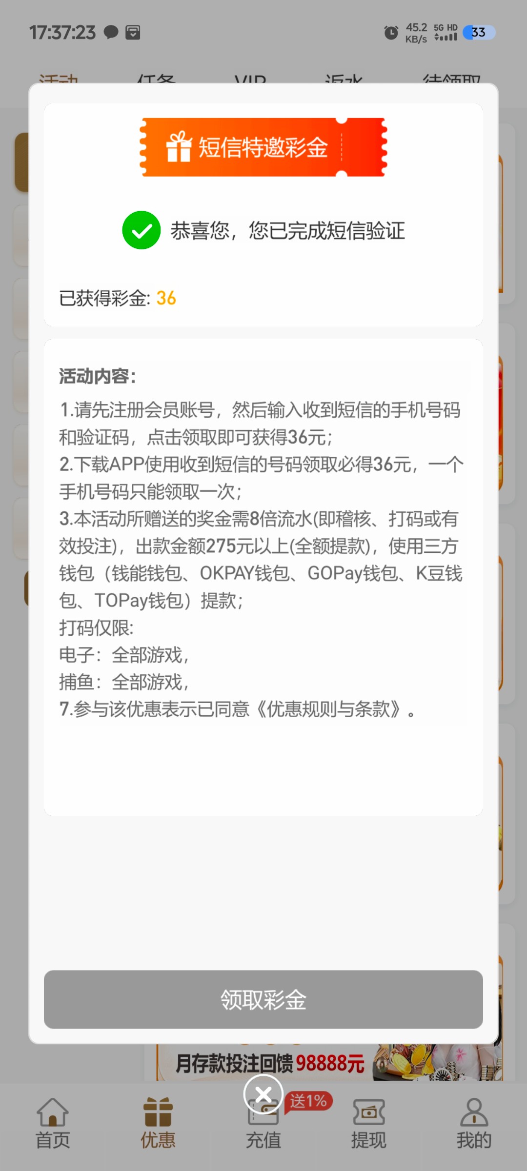 发过了 你今天领到了吗? 领到了彩金到的截图发一下