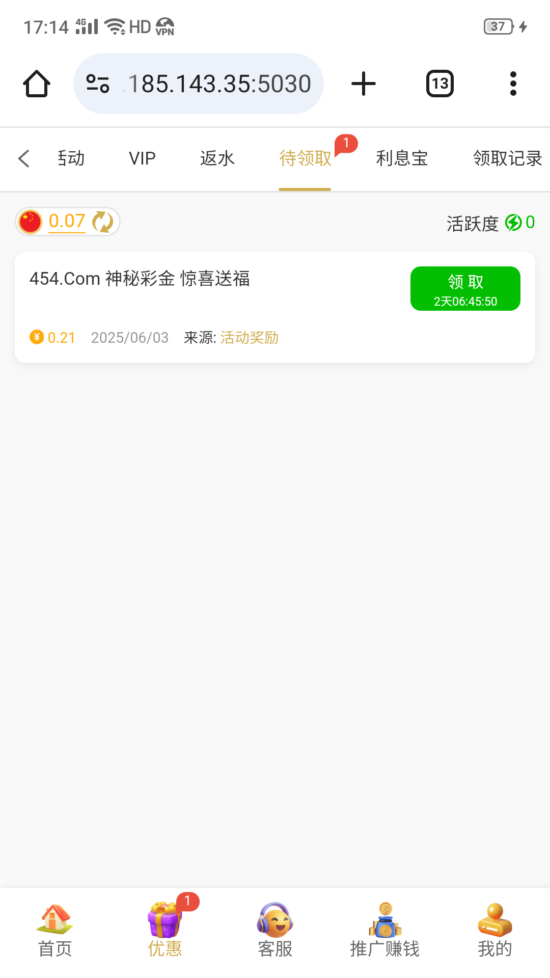 这台子不能说它不好,今天我也有神秘彩金,3块多,优惠及其小气,但我在这台子算下来是赢了的,所以我不说它不好,但是真的小气,给的彩金都是几毛几块,没超过10块的