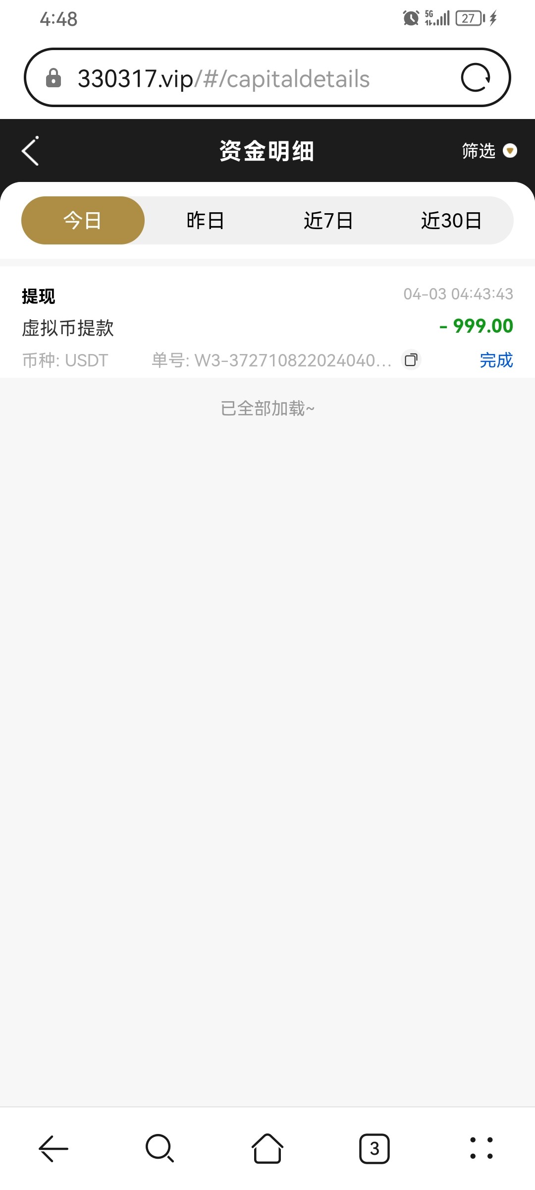 同样送了我88,然后去百家乐过了3关,提现361,他说我IP多次切换,这样我充值一百虚拟币验证,我充值后然后他退回让我打5倍水,然后去真人下了一关直接死。