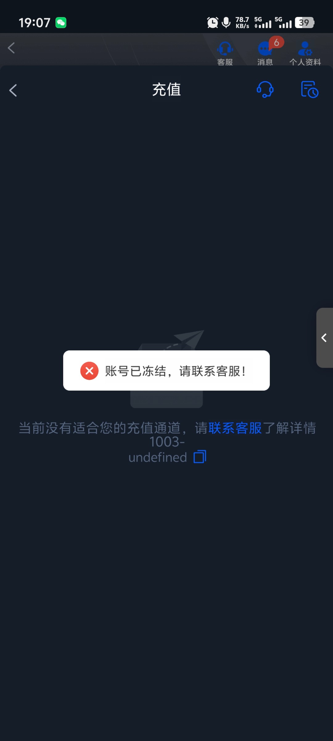 黑了冲了10之后直接封号