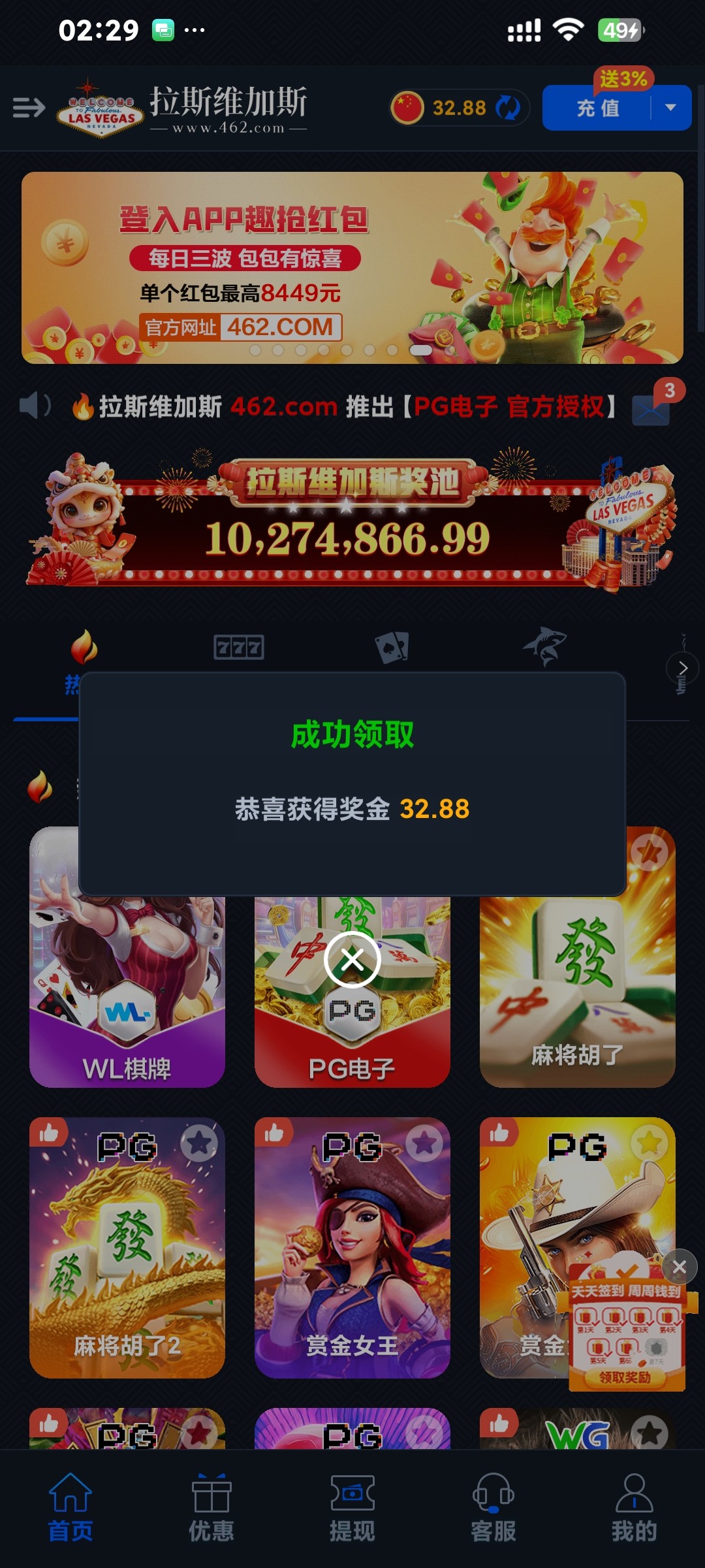 登陆上去号上有9块神秘彩金