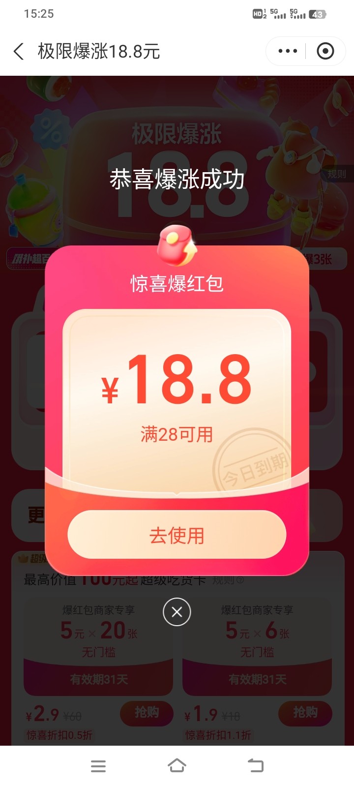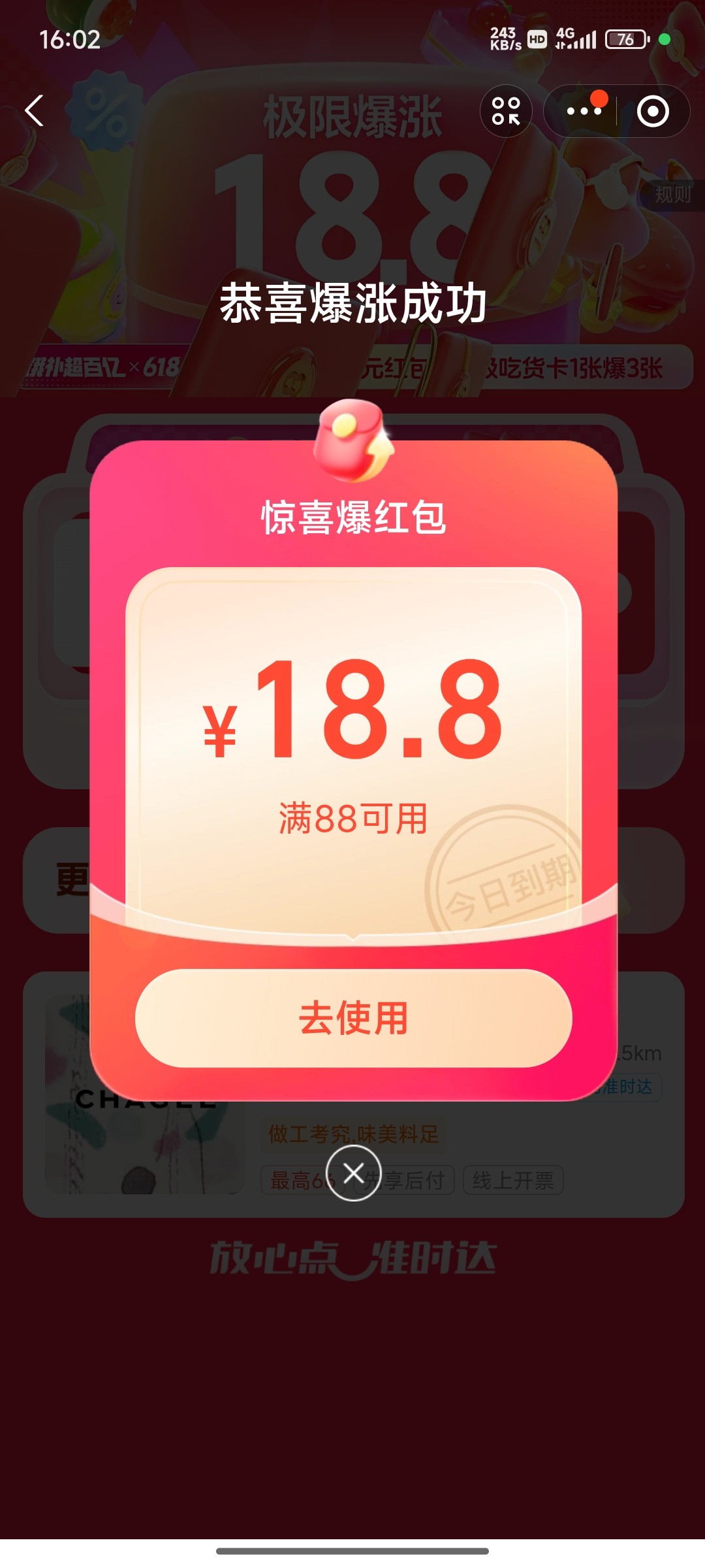 饿了么膨胀没用了,彭的都是48减18.8,现在支付宝里面饿了么膨胀几率大