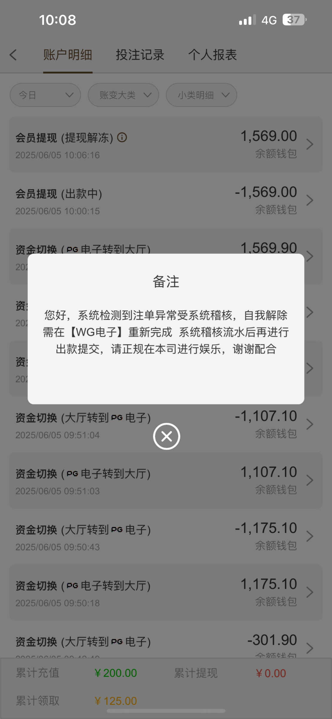 牛逼充值300玩PG赢一千都罚流水,正常来说这种模块玩真人才会罚流水,垃圾台子弃了吧