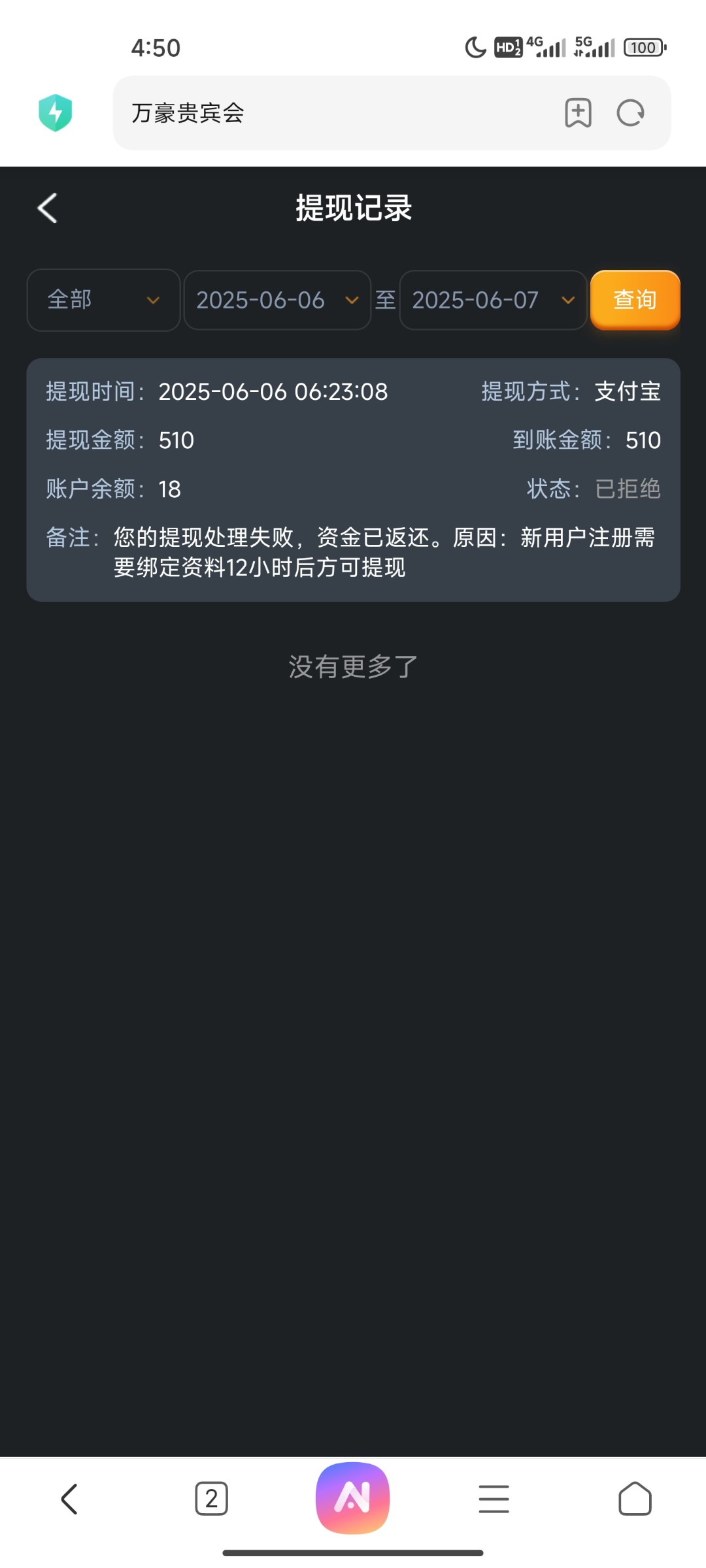 提现一个小时了,不知道能不能到账