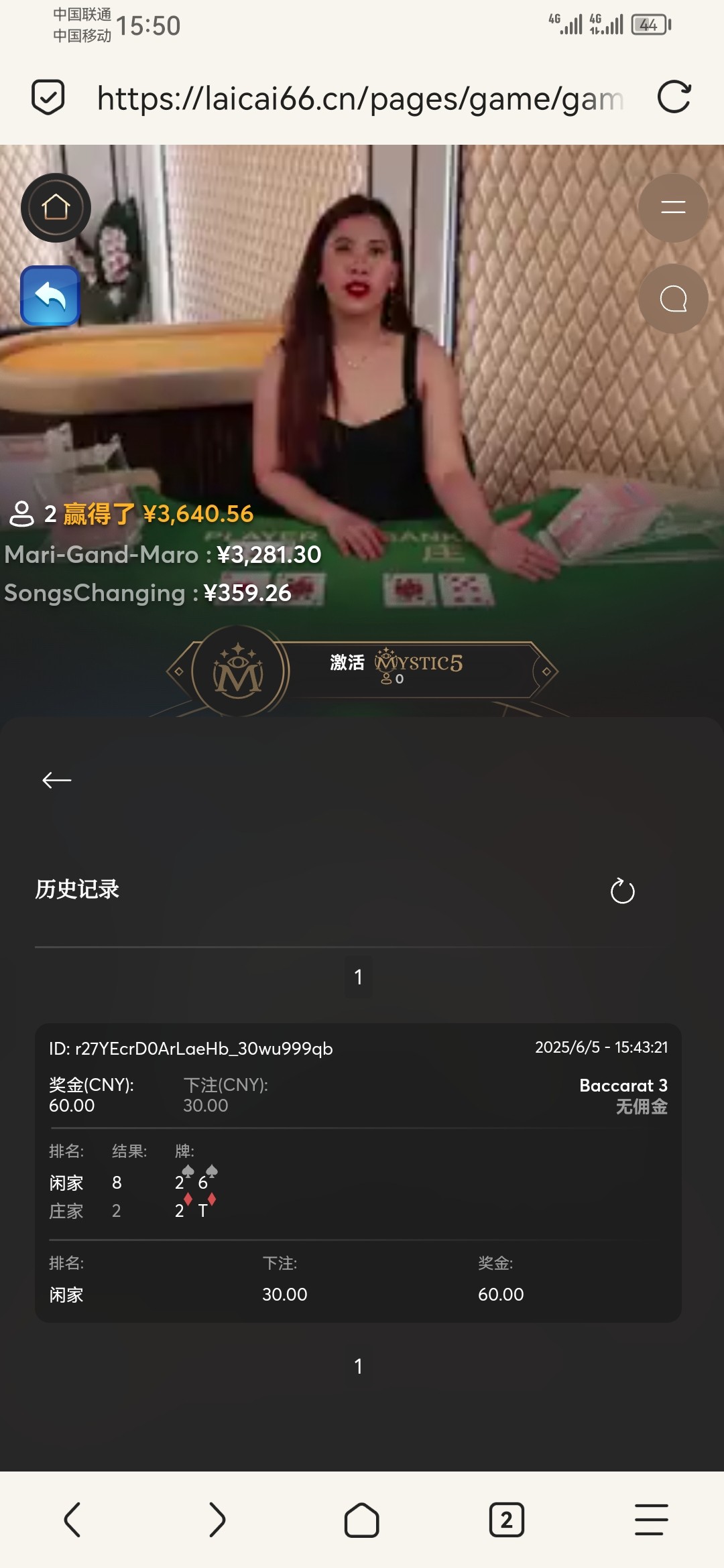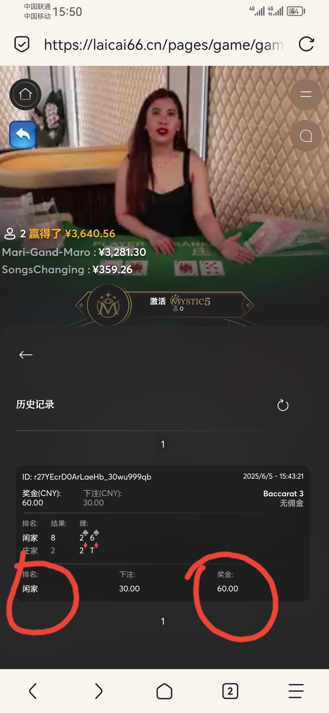 @a112386755 ,不要看视频。视频是后面进去的截图,不是我下注那一把的截图,看游戏记录