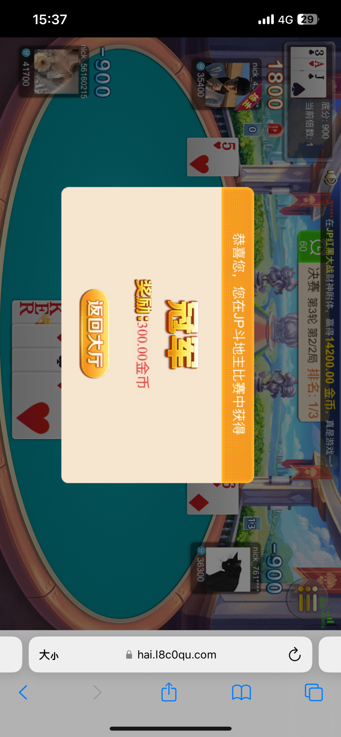 他这个斗地主好像是用积分吧,我忘了他的好难打,牌又不好