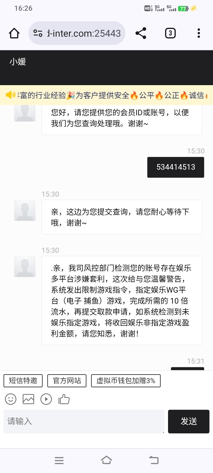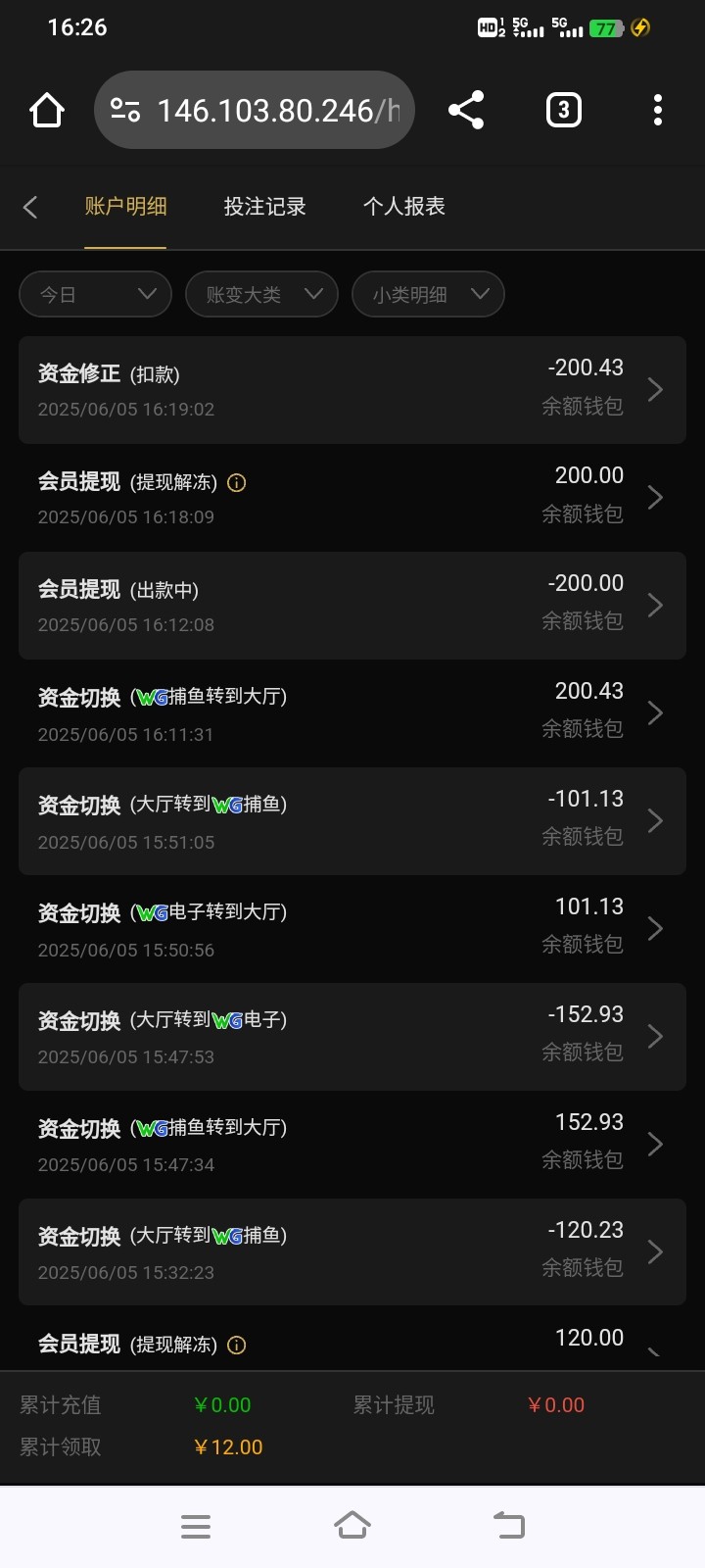 特邀第一次打到120退回让打wg游戏10水,打了20水我去提款也退回了直接扣除,大家之后充值别玩这个台子
