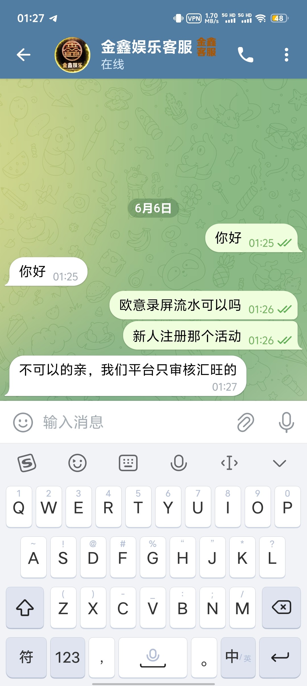 找我上面发的客服啊兄弟们客服叫瑶瑶很好说话的我一口一句宝贝叫的老舒服了