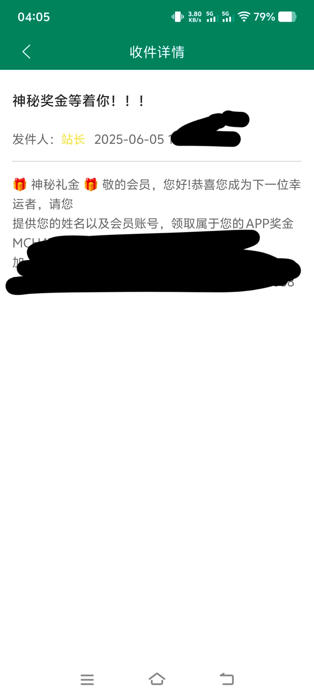 半年多没上号的bet系列平台,昨天上号看了一下收件箱里有个神秘彩金,联系发了1888需要三倍打码,我的是不限制游戏,出了4700,没有充值过的就不要去了,以前充值过很久没登录的号自己上去看看,按要求出款。不放链接了,自己在论坛搜索Bet合集吧,这个彩金不会给你打电话,除非你自己上号看,没有充值过的或者充几百的就不用上去看看了,没有不要中出我,毕竟红包很大,概率也不会特别高,见谅