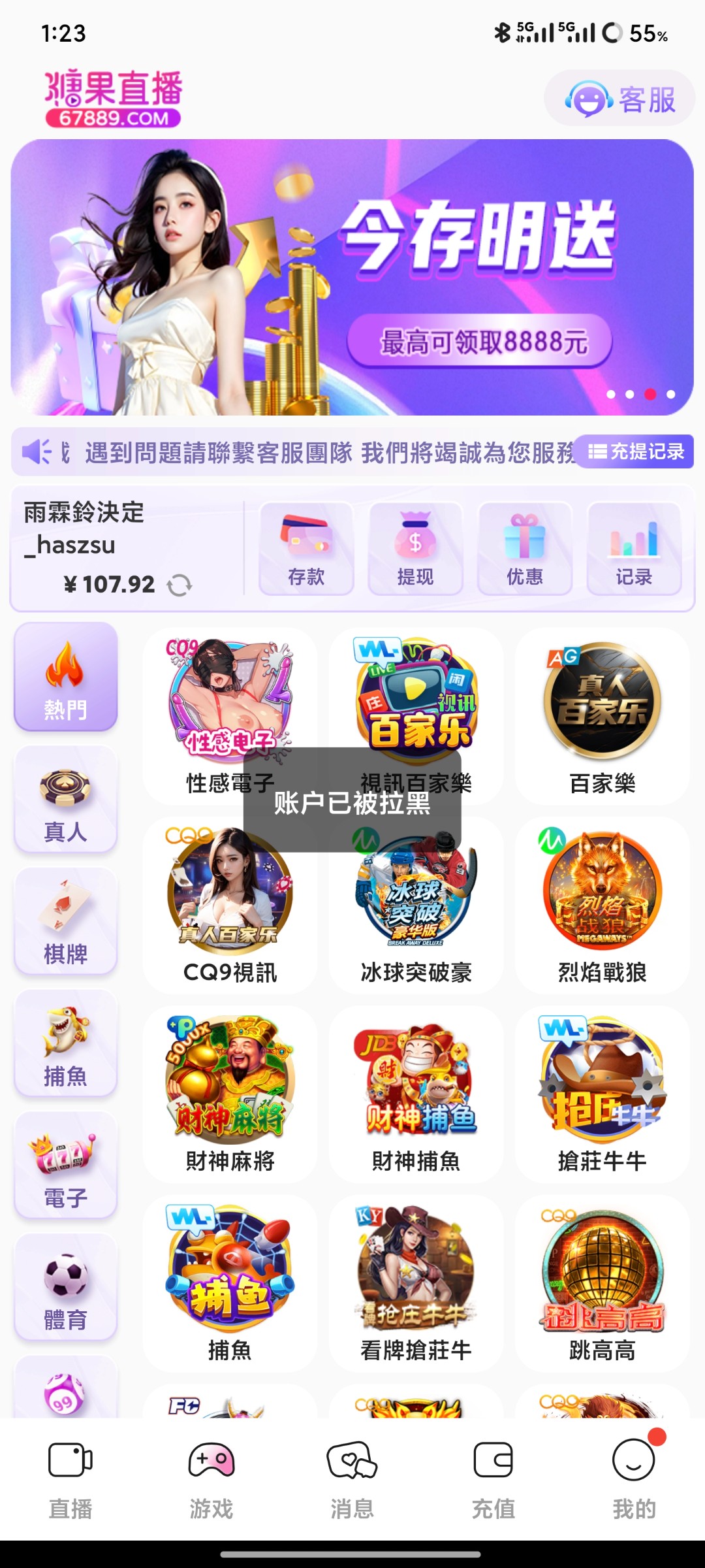 糖果没黑过我,偶尔充值一下。前几天充100提3000也出了。