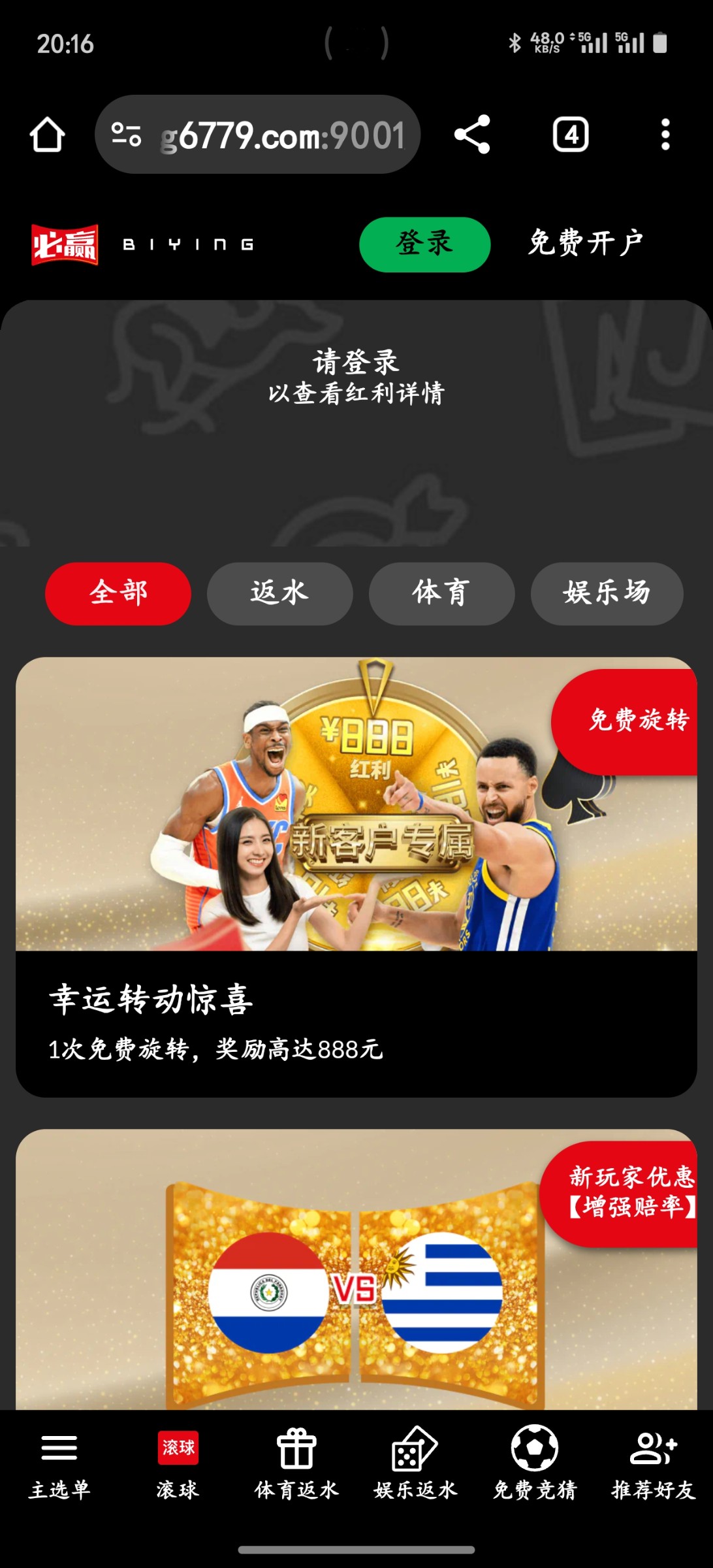 新用户注册,一次转盘,必中18,只能玩体育。查同名,我同名被制裁了。查账户。网址是,https://www.biying6779.com:9001/zh-cn/offer。