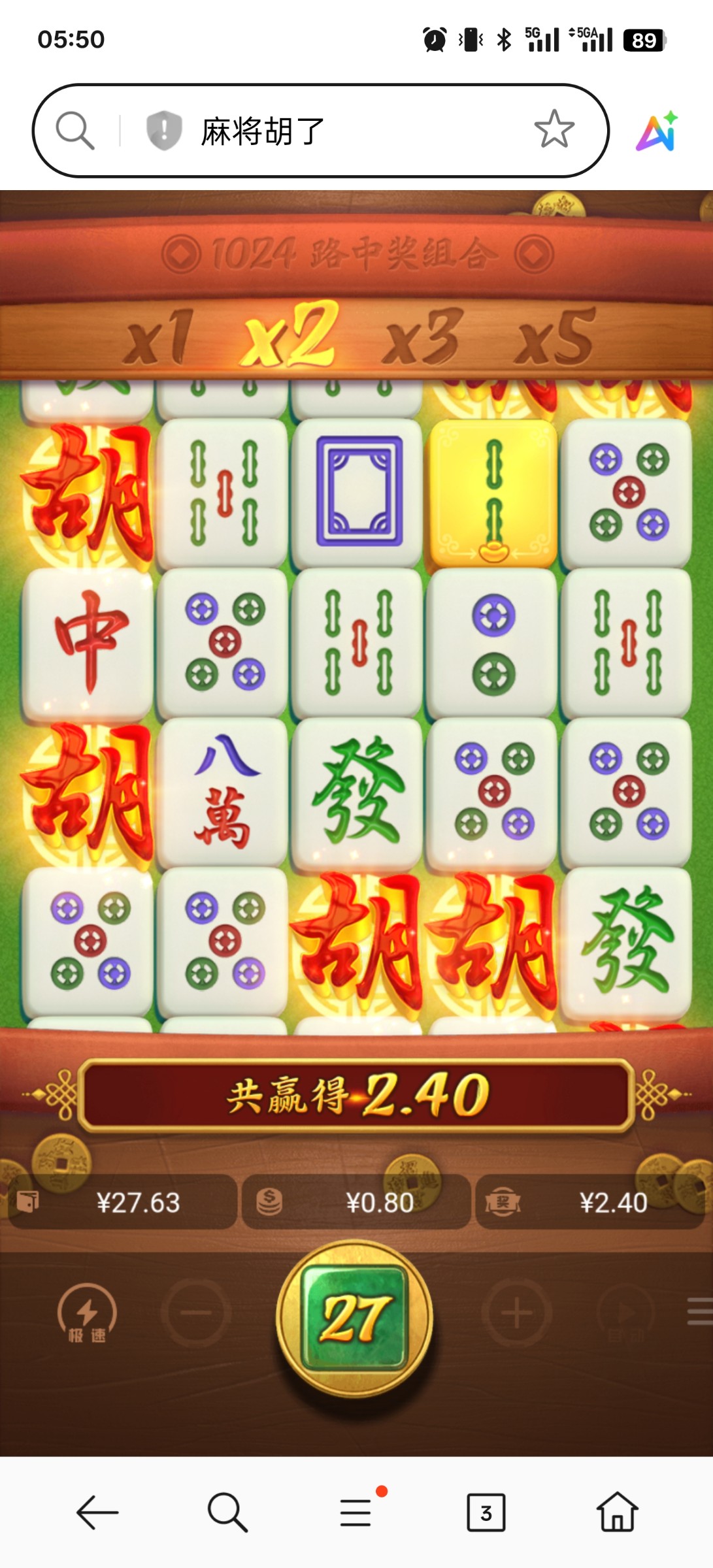 这个台子麻1我进去免费9个胡,麻2进去免费7个胡。出来都不到50倍,跟开元那种假麻将还不是同一类型