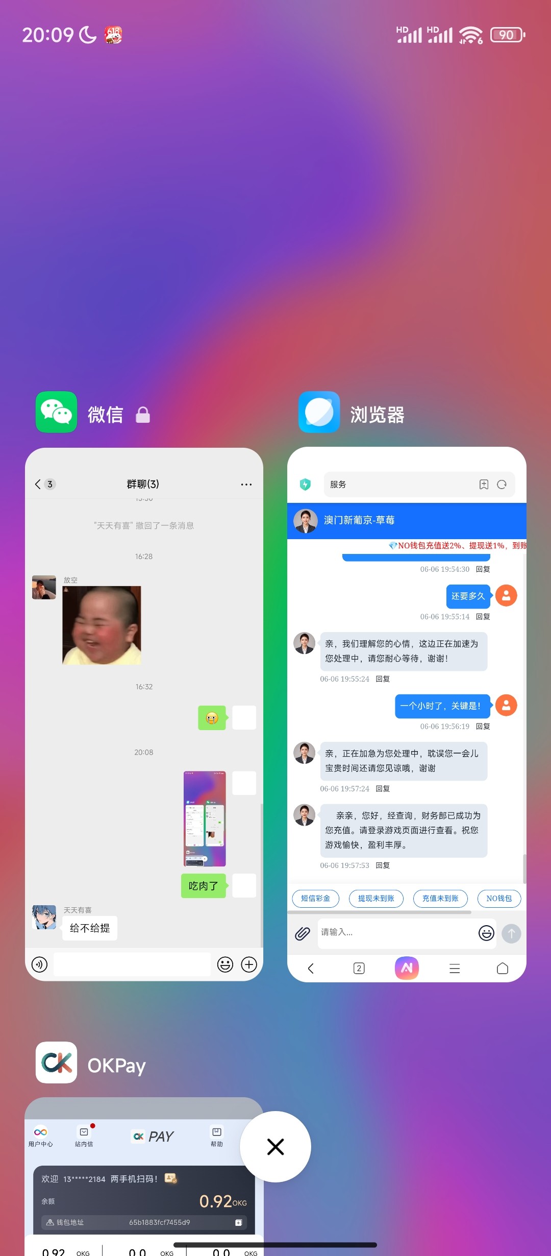 我欠我女朋友两千,把账还了,话费充了,还有两百,下一一定团你们