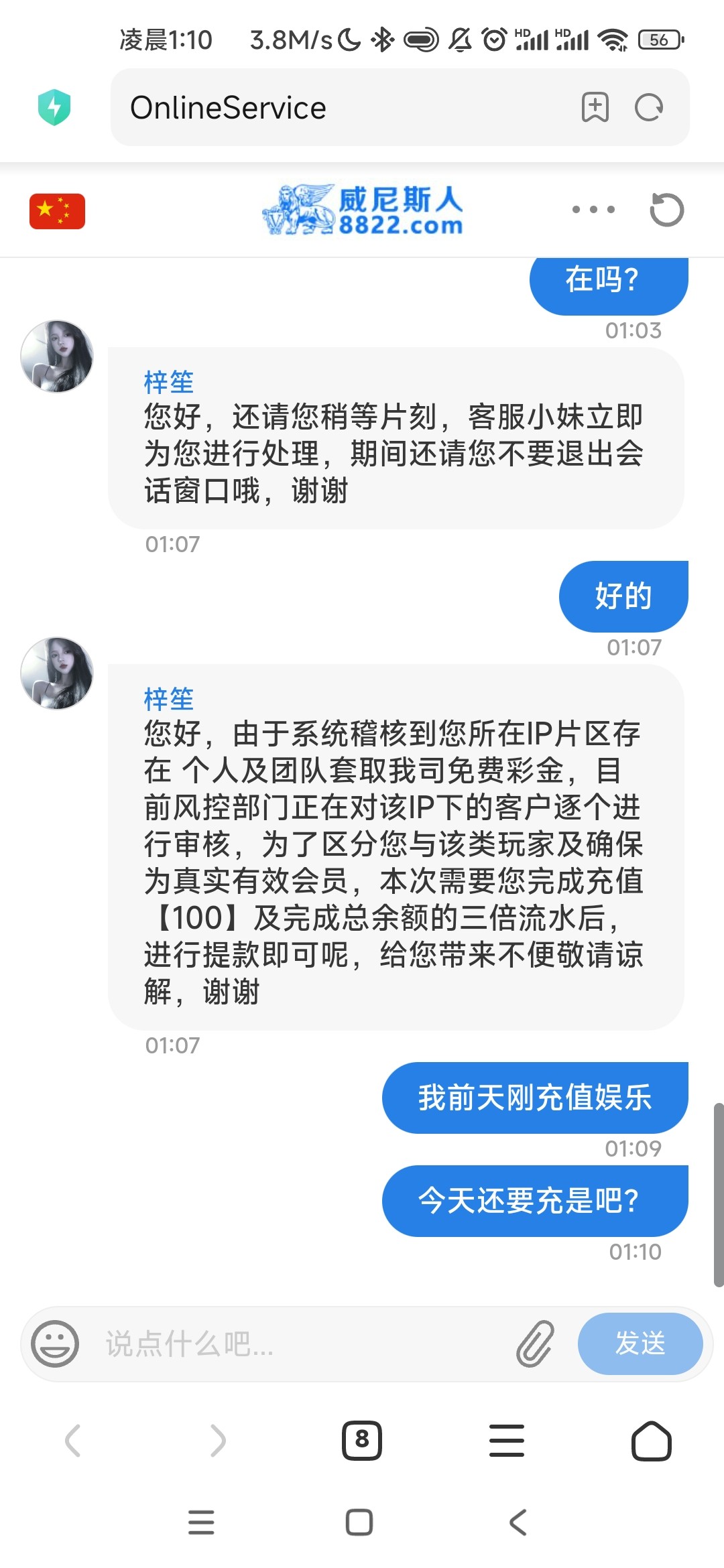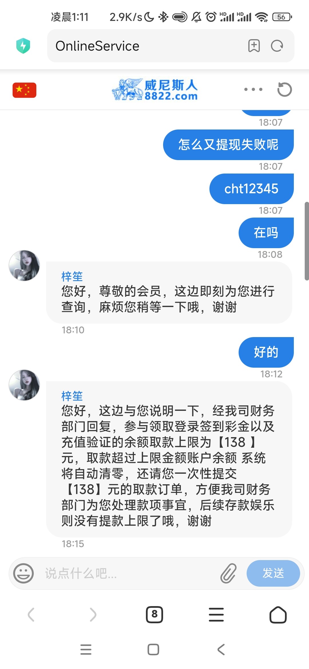 3.30号签到彩金打到100让我充100打余额三倍水 我充了 最后就给提138