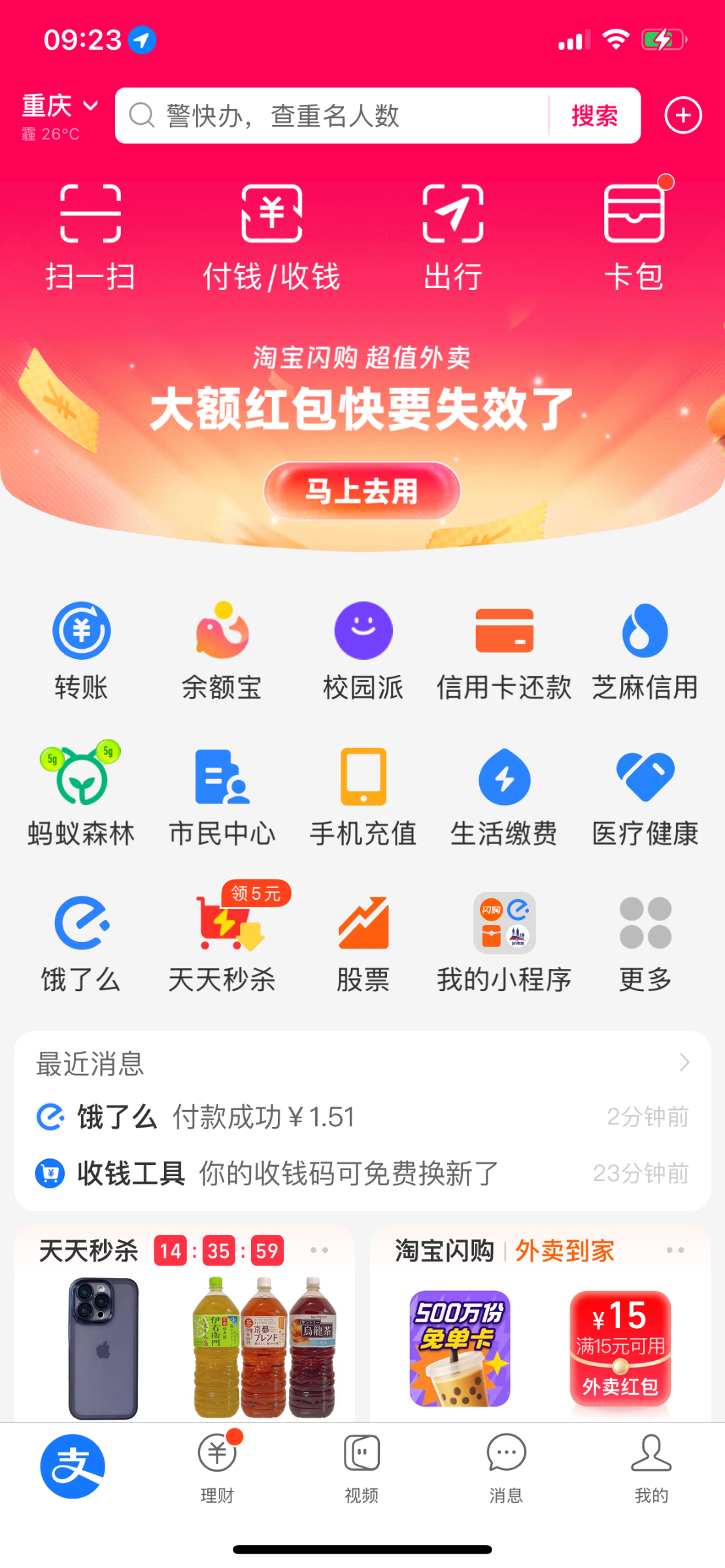 支付宝首页闪购点进去基本都是15-15,我三个号都有