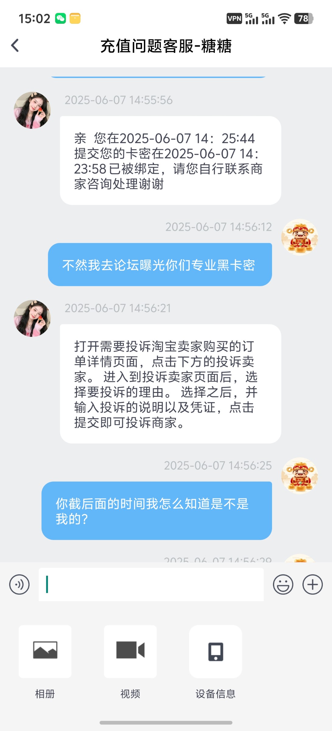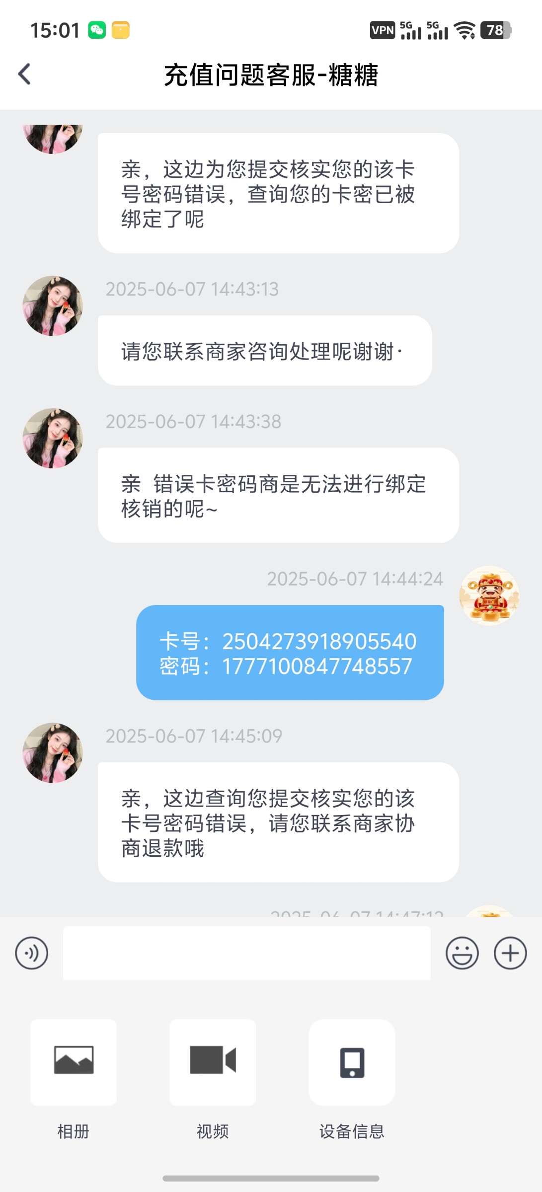 买了卡密第一时间别用平台的核销,直接甩给客服