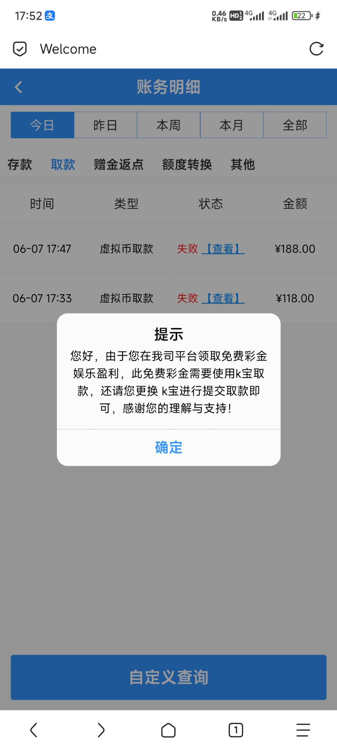 你们是不是蠢,狗庄要对应实名的K宝,名字对不上,用他自己实名的K宝提不了