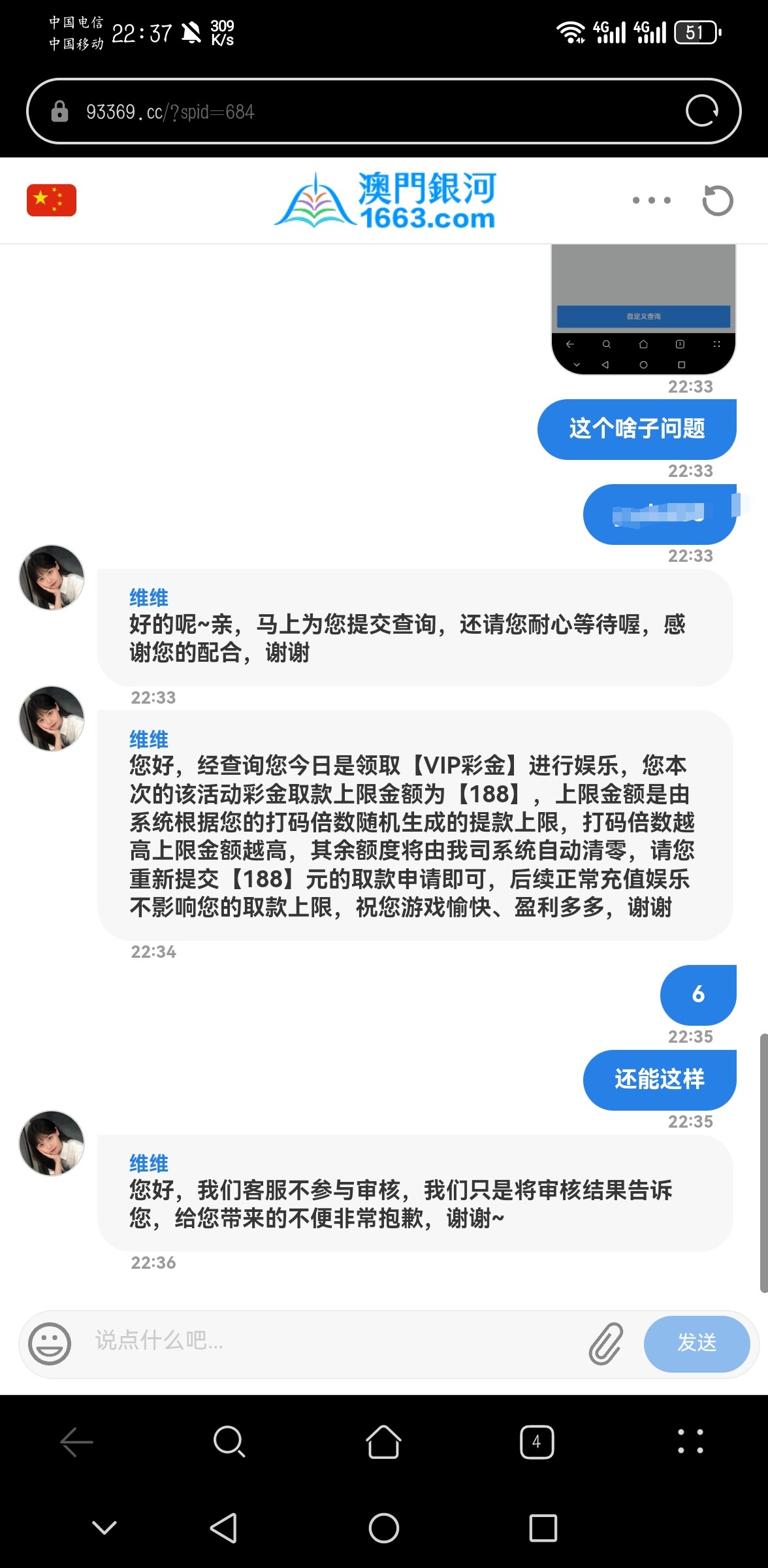 以前回馈还是不错的,后来疫情后就不行了,老板都换人了,活动也少,取款多了毛病也多,各种地区异常罚流水,不建议玩这台子了当然贱骨头除外。