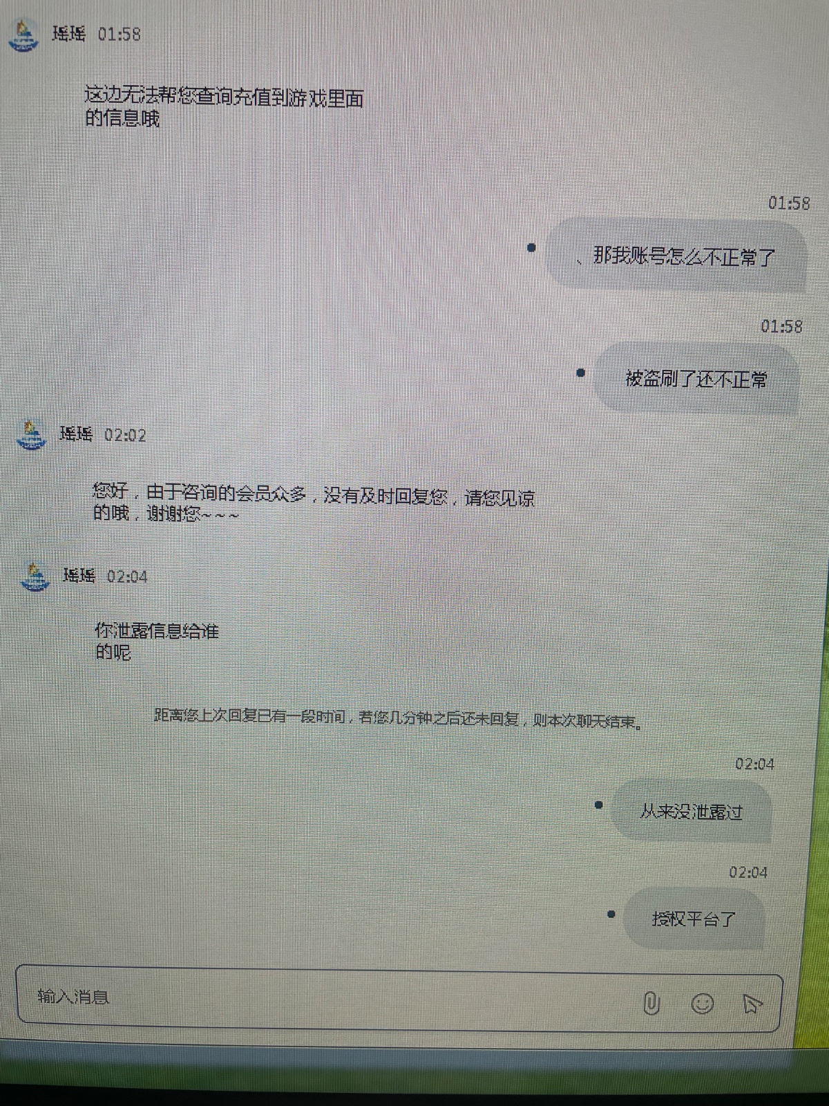 八万300+300刚提到钱能4分钟被盗走了,账号还不正常了,问客服半天不回,来来去去都是那几句,钱能授权了8个台,有三个不玩的,问客服说账号异常,不给登录,不给取消授权,太难受了
