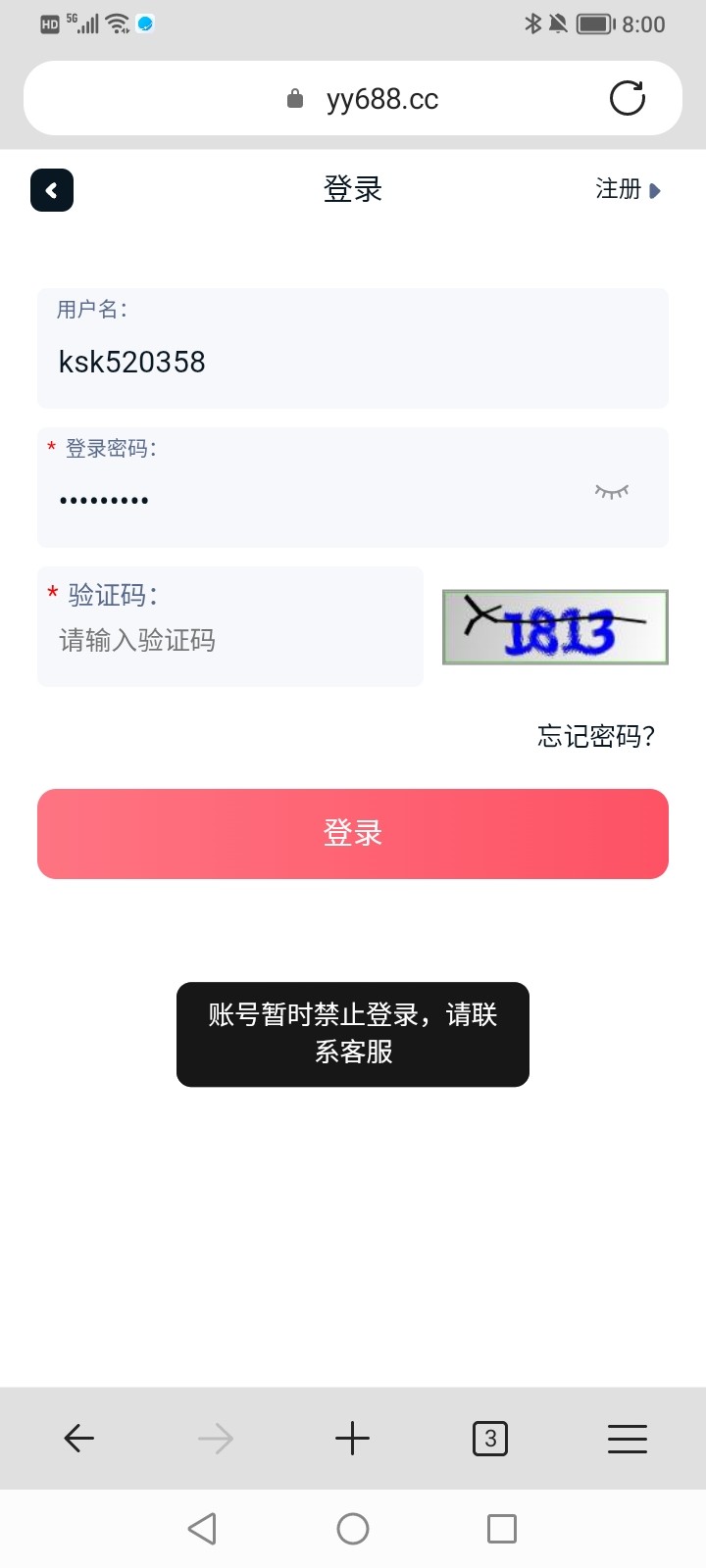 账号禁止登陆,请联系客服