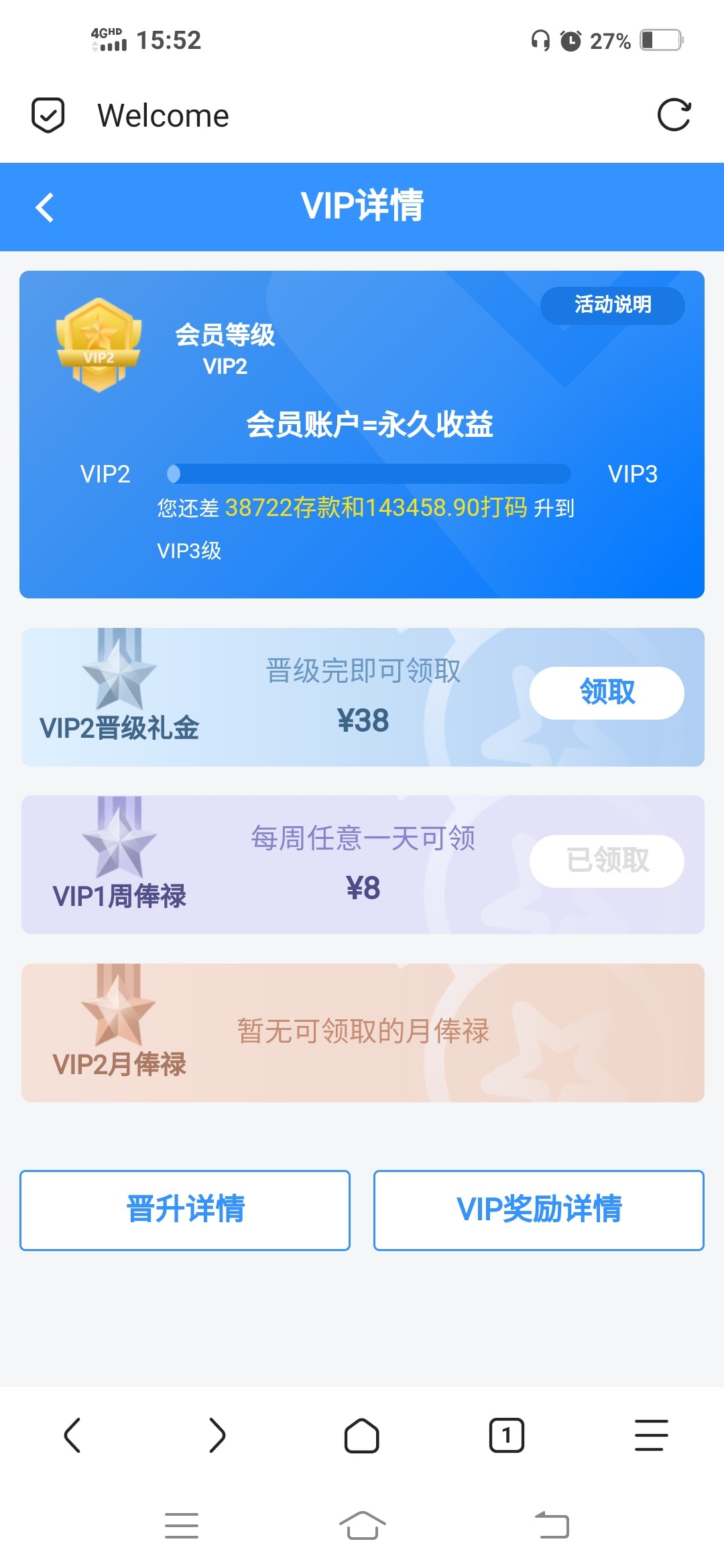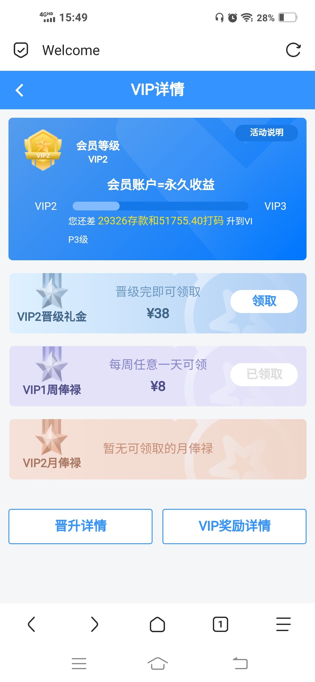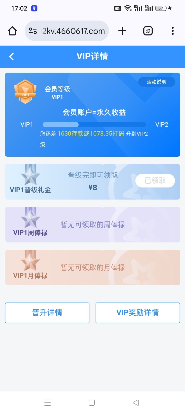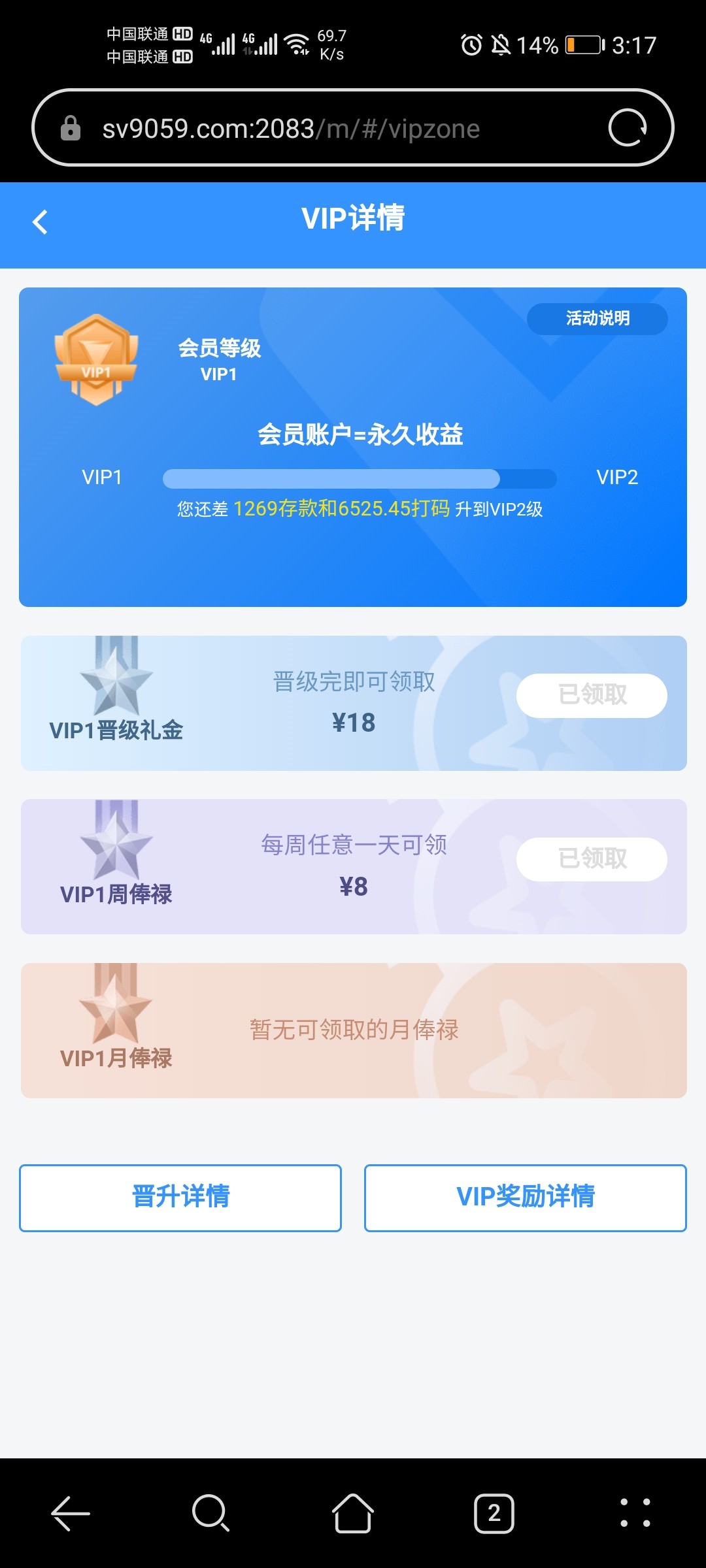 之前是vip1的就可以领取vip2的晋级彩金 已经是vip2的领取不了的