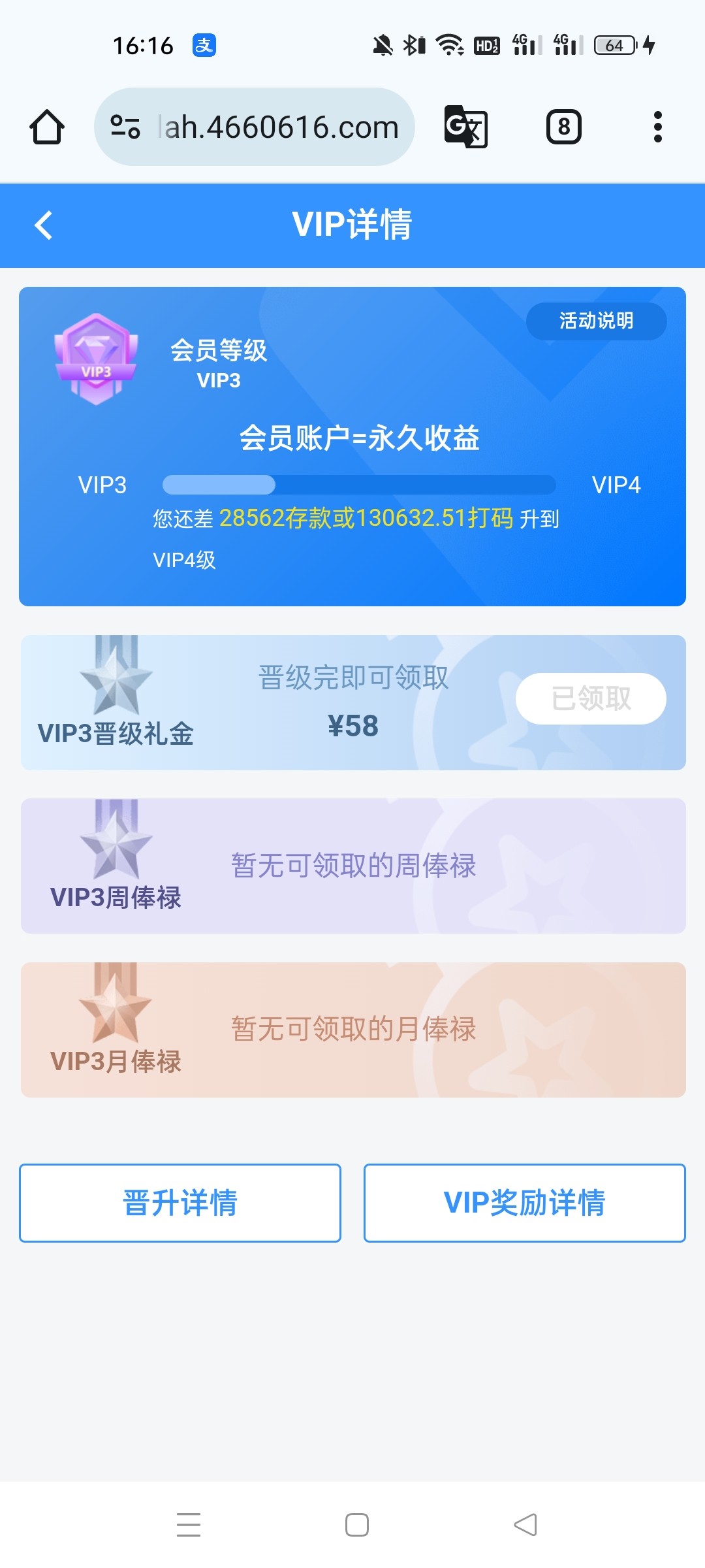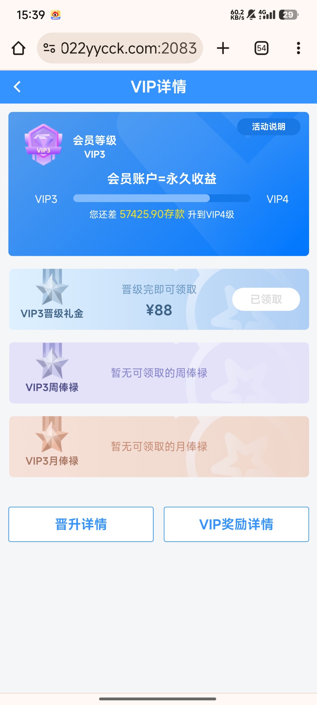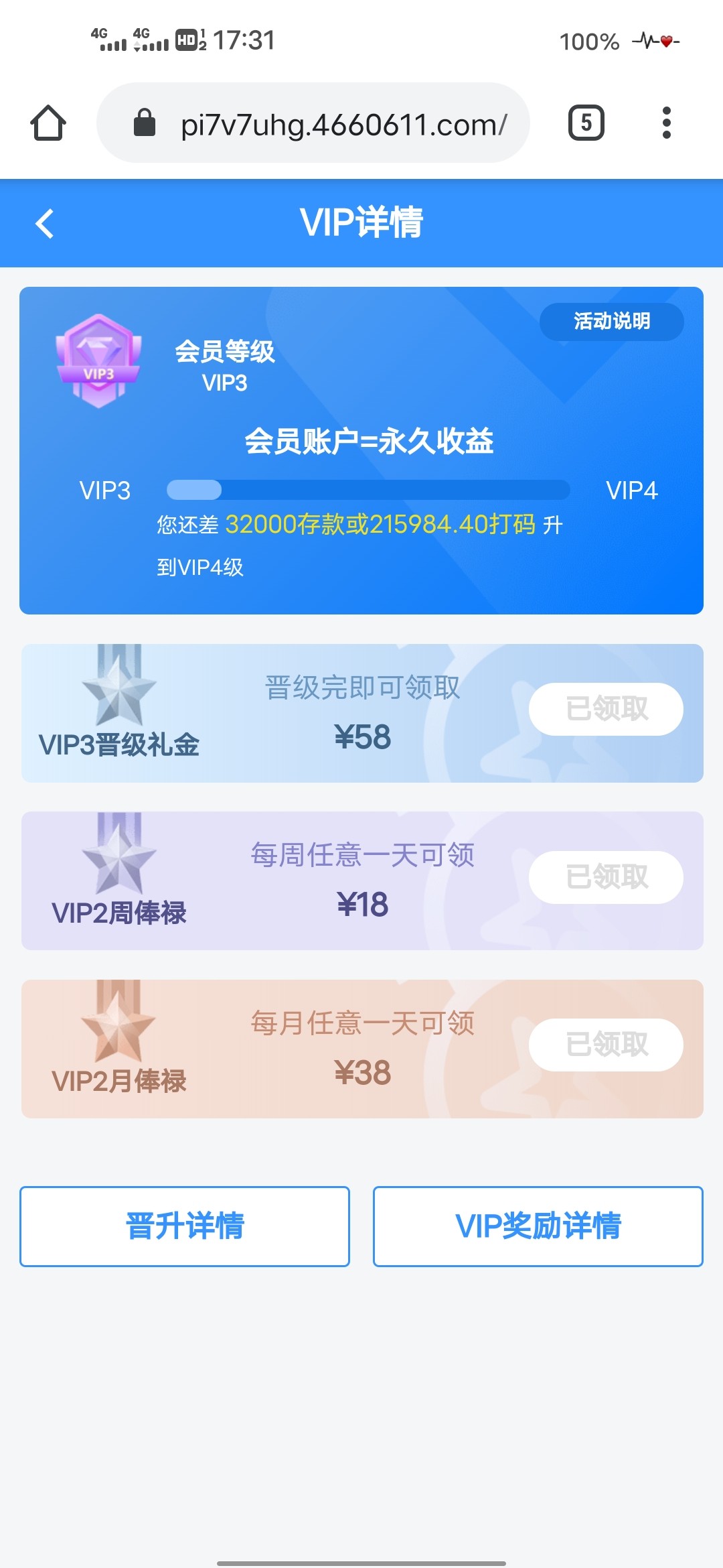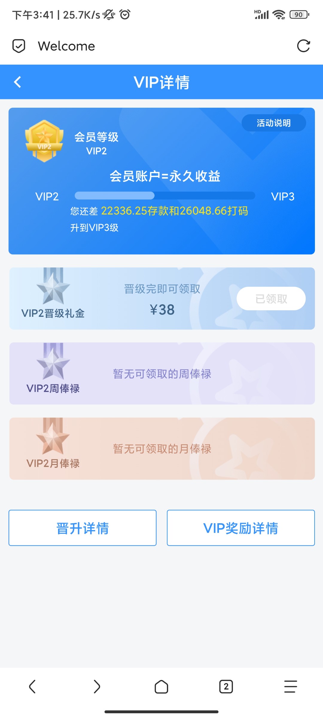 之前是vip1的就可以领取vip2的晋级彩金 已经是vip2的领取不了的
