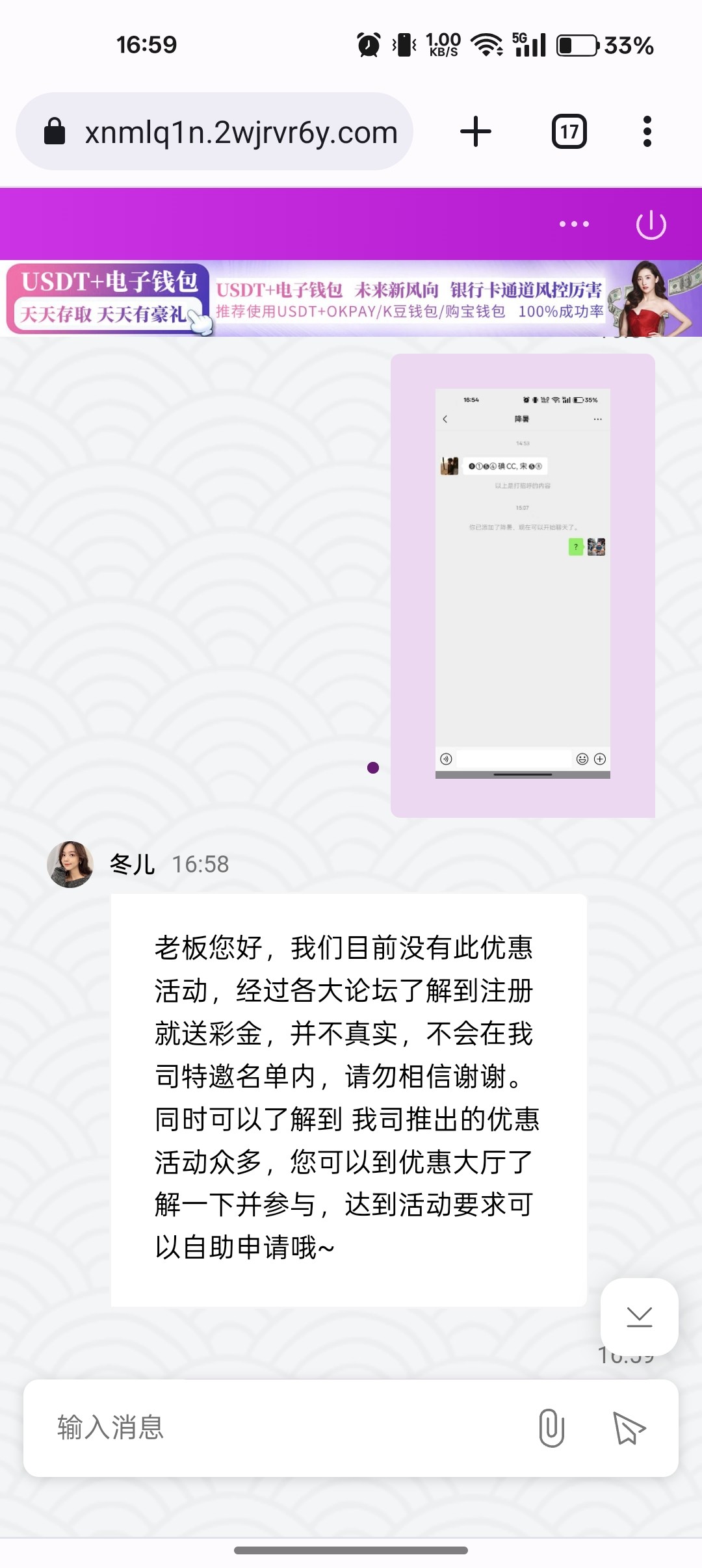 老板您好,查看到您账号不在特邀名单中,经过各大论坛了解到注册就送彩金,并不真实,不会在我司特邀名单内,请勿相信谢谢。同时可以了解到 我司推出的优惠活动众多,您可以到优惠大厅了解一下并参与,达到活动要求可以自助申请哦~