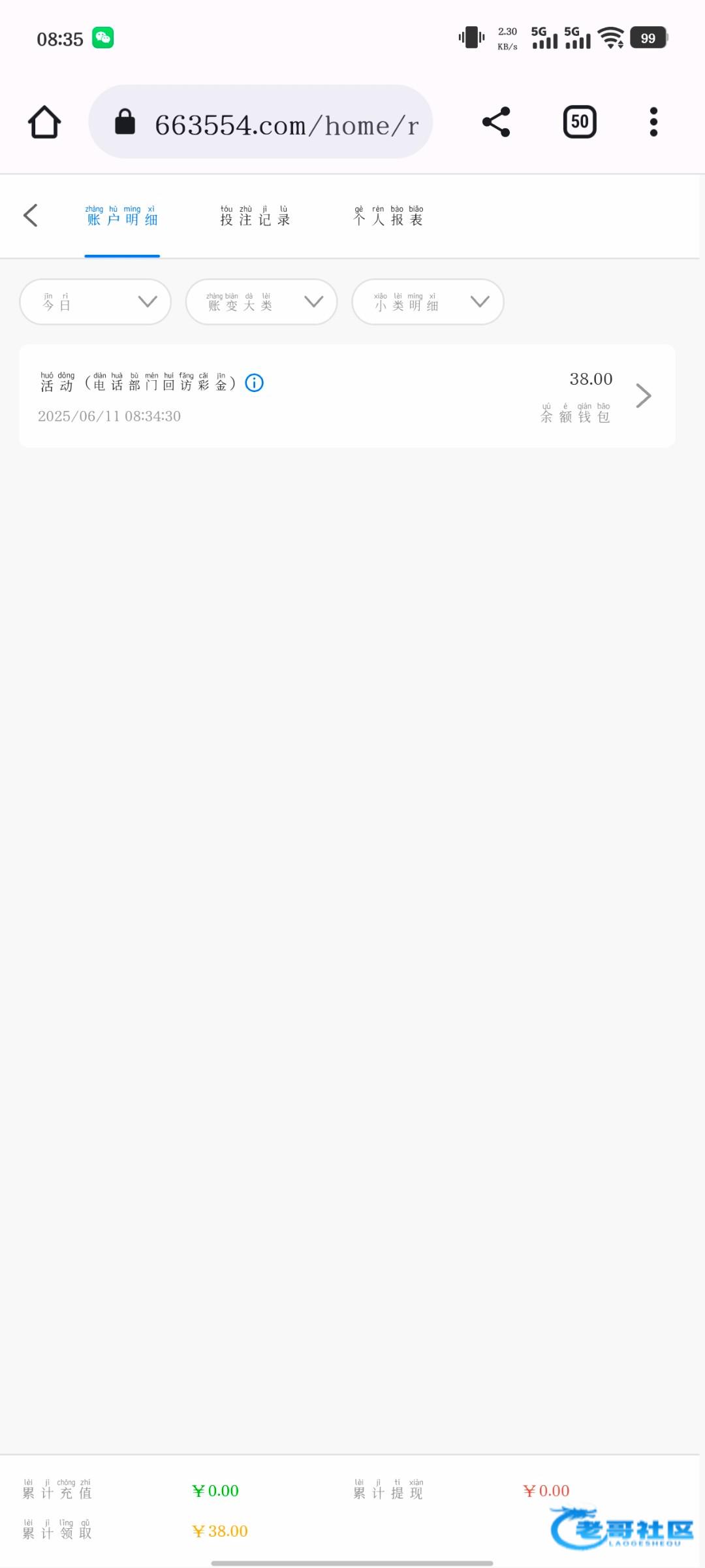 领了三十八 打到228提现 让我充值同等金额 打一倍流水 我充值了230 打到两千 提现 说让提银行卡 后来刚到十一点五十分 他们系统财务结算 提不了 让凌晨十二点零五提现 刚提现到了