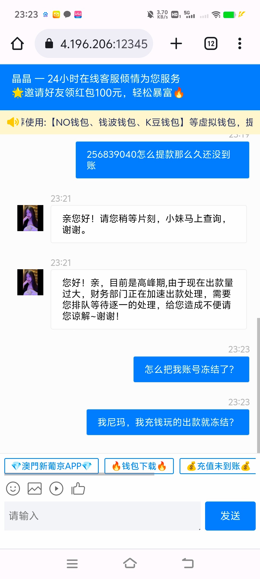 兄弟们别去了,存50出100冻结了
