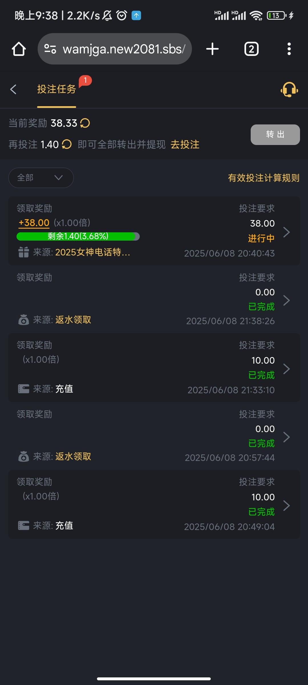 金额是卡钱包的,等于你要搞够38流水才能拿出38块钱用,不然别想了。