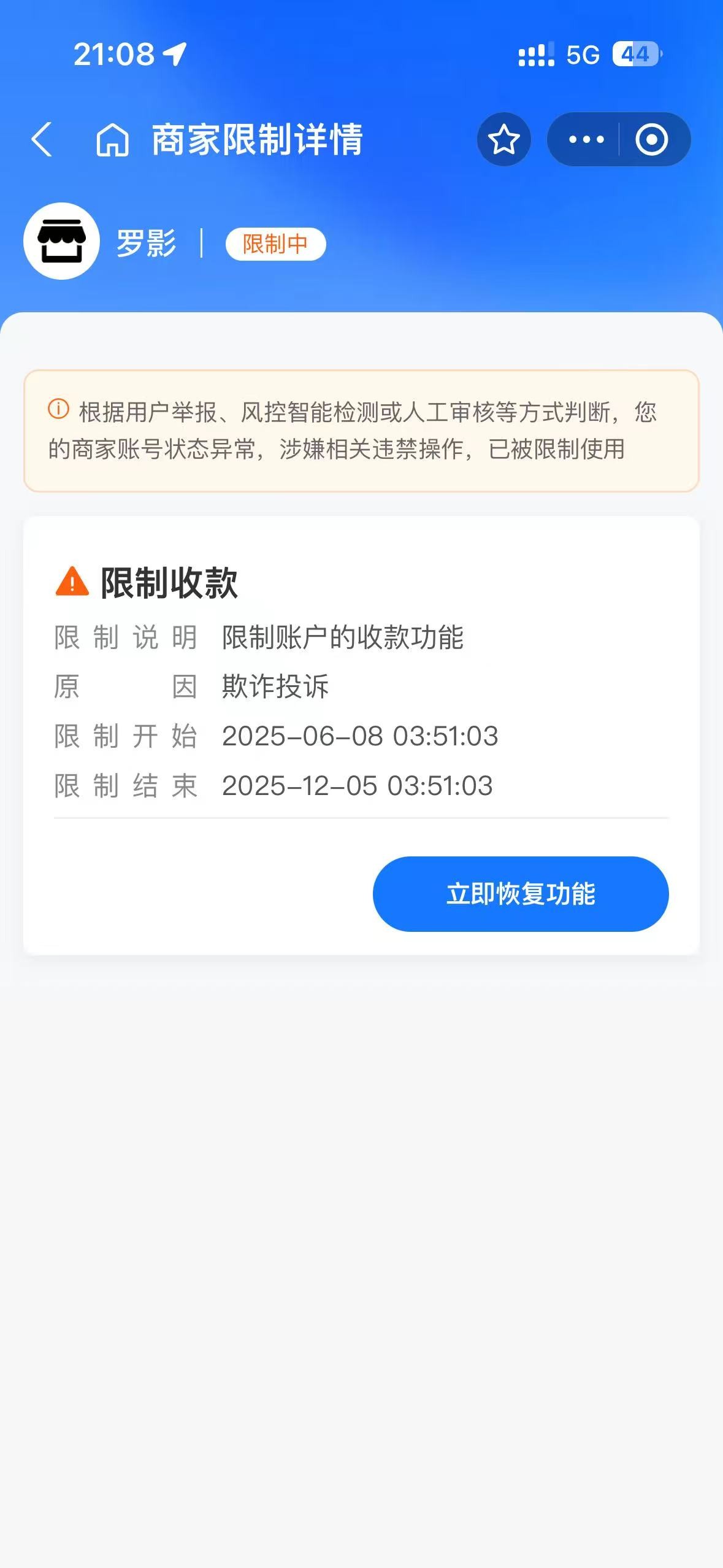 没事 到期正常恢复 我就是这样 到期一样用 别管他