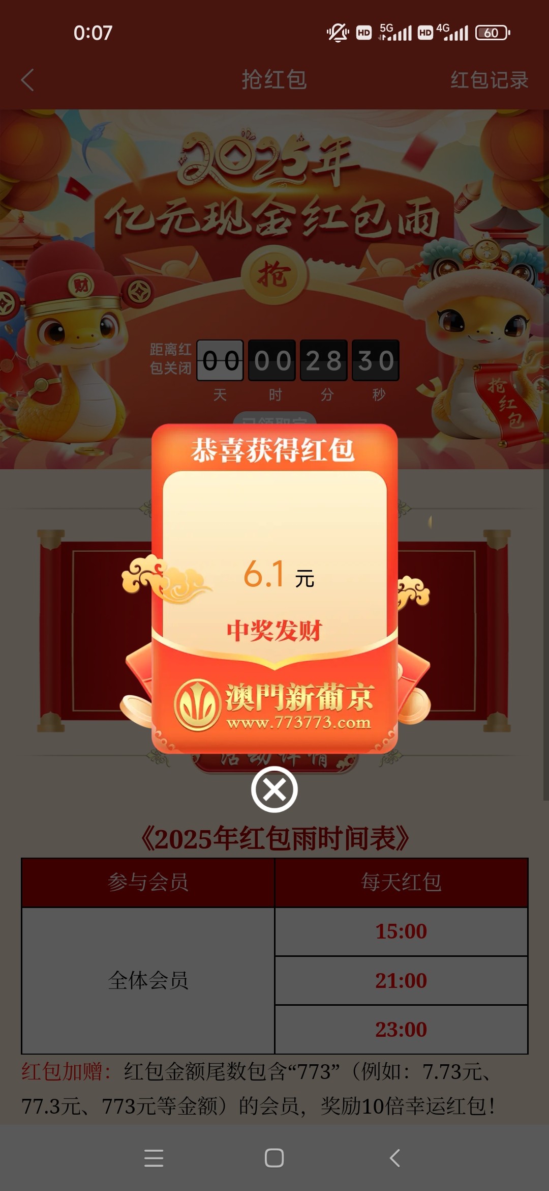 哈哈可以抢了61.1期待1_2点的红包