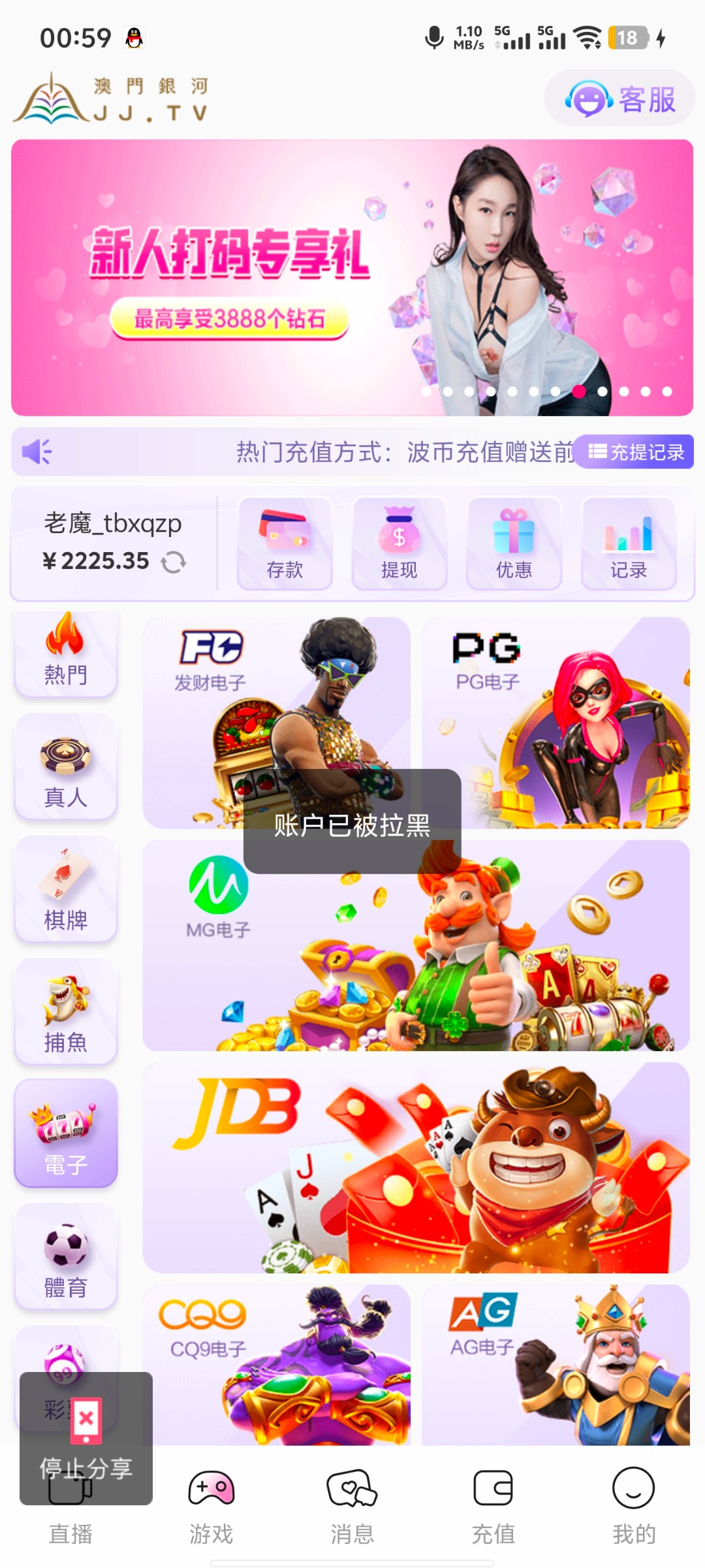 今天本来玩ag财富。吃上肉了,结果玩的是这个没怎么玩过的平台,充500提2000都黑了,无语了