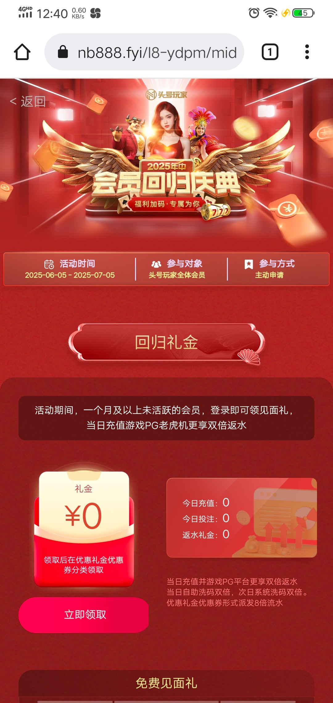 每个老玩家都可以领,优惠里面 NB191.com