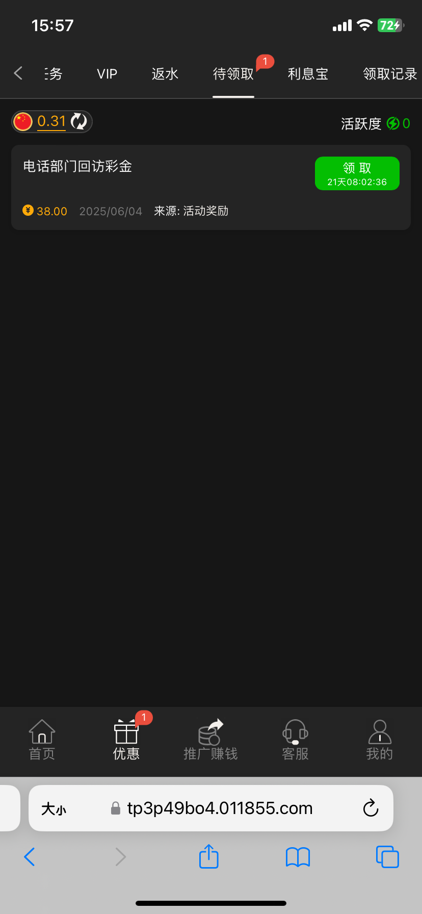 今天上号看见的,送了38,大家可以登录看看 地址 3016.com