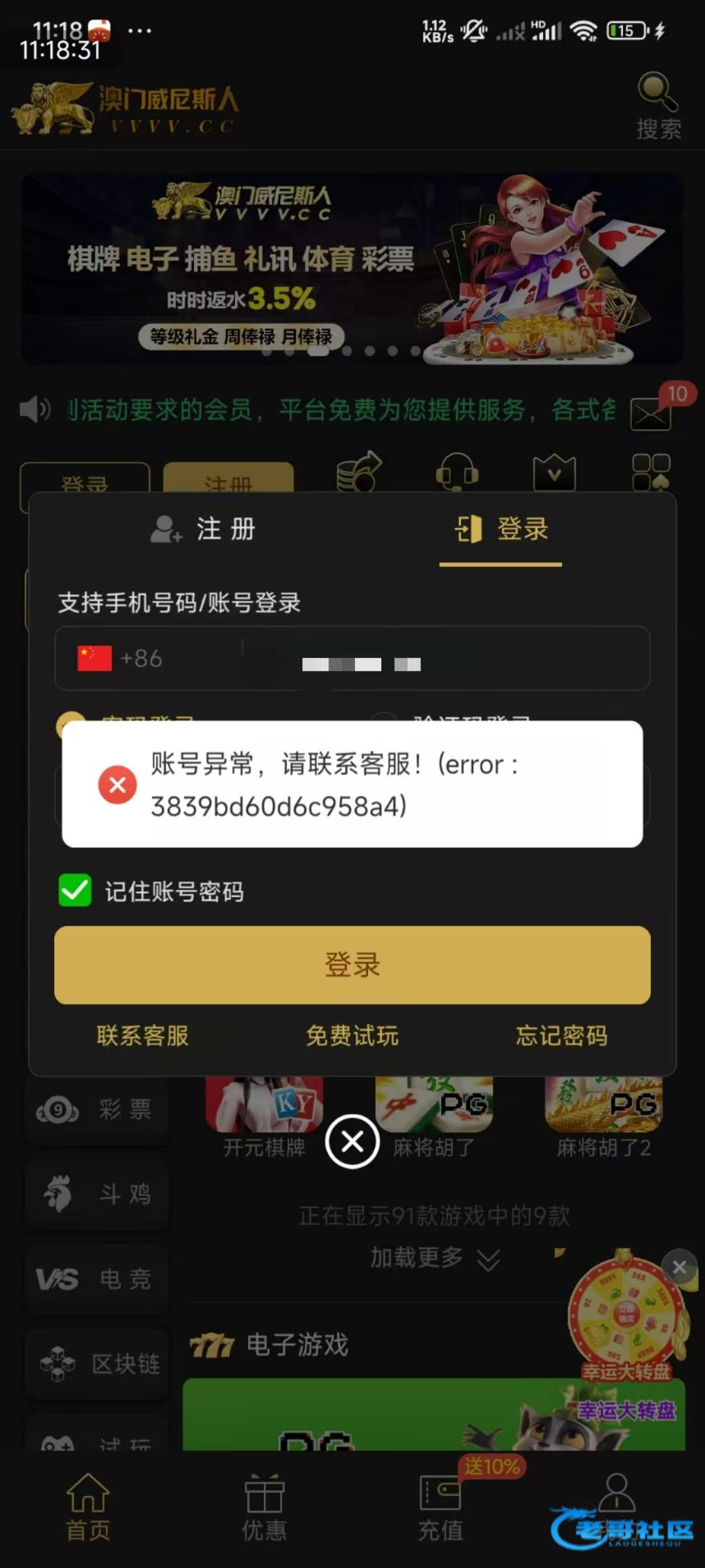 早上看见老哥发vvvv碰瓷38,碰到了,下了200,号剩下57,需要充值57一杯水,冲了一直爆,打到了400,提现秒封号异常,白嫖500+变白嫖143了,血亏