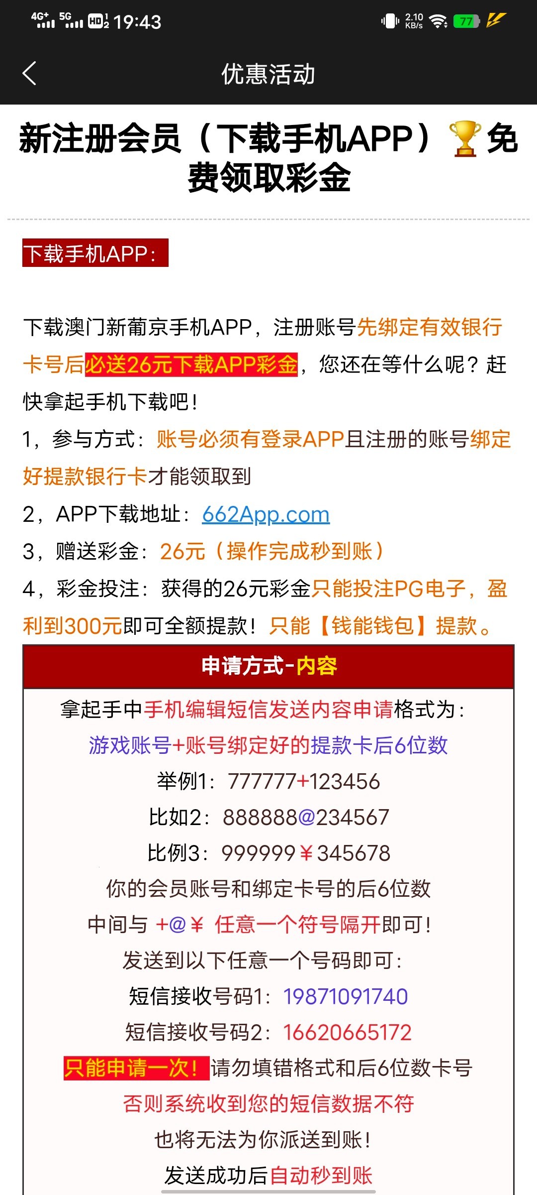 注册个新账号,银行卡随便弄假的也行,我两个号都撸到了,打出来提钱能