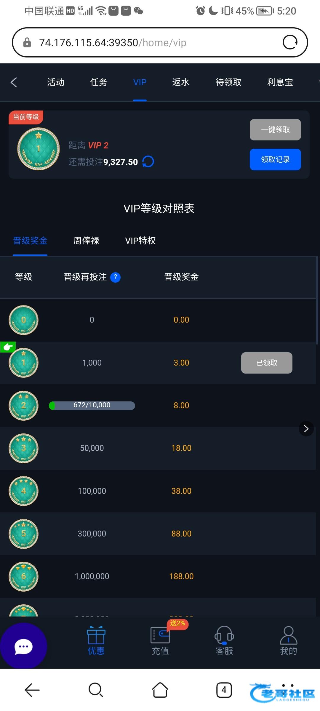 前几天登的时候没有,今天登有,就打过20多的流水 每个人的都升级了152.vip