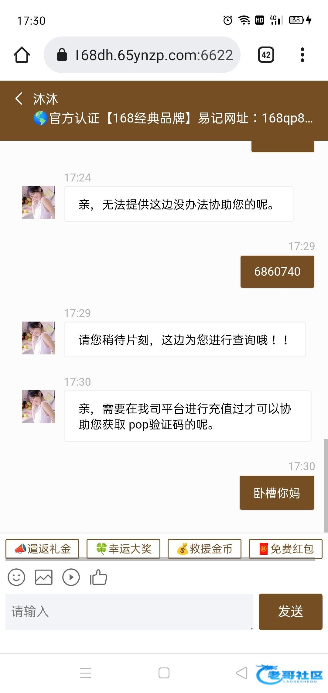 很多兄弟们都有pop收不到验证码的烦恼,最近摸索出来了方法,直接找168棋牌客服,说pop登不上去了,网址qp168.com,发手机号码给客服,然后你再点获取验证码,然后你再问客服要验证码即可,不用注册168棋牌平台,直接找在线客服。亲测有效