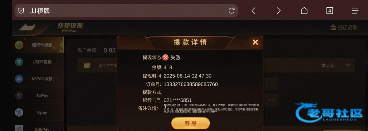 很久以前我也是领了免费的出了200,最近频繁打电话给我说充值送彩金,我看论坛老哥们也有出款的,就充值了100娱乐电子体育,结果出200被罚15倍流水,这个平台现在开始黑了。
