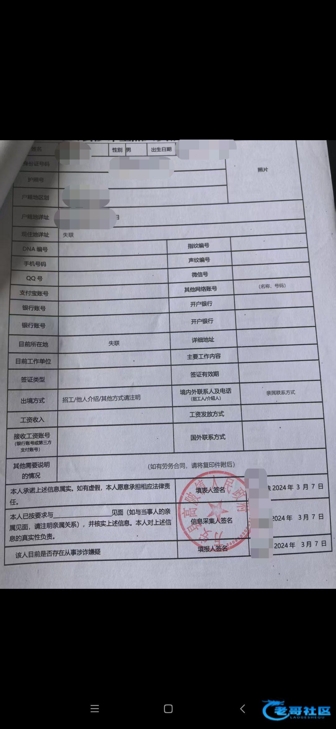 这种一般都是偷渡国边境或者搞诈骗才会找你登记这种信息,说明你是高危人群,填完这种一两个月之内会直接按头呆看守所37天左右,37天够时间有证据就会判刑,没证据就取保候审,你肯定搞过什么或者你的身份信息搞过什么才会登记,总之看守所37天你是跑不了