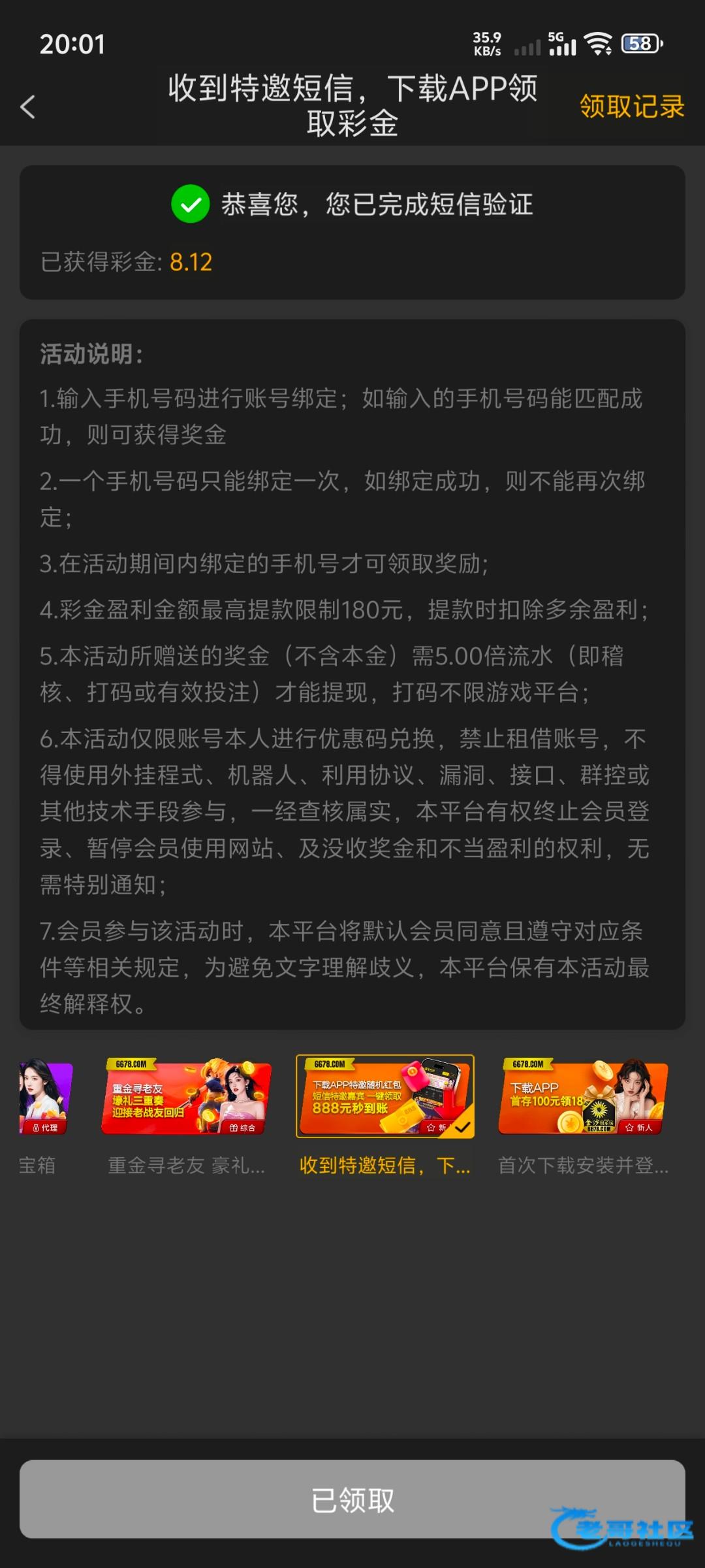我送了8.1,自己碰瓷,不限制游戏,五倍流水,最高下180我申请提了180,不知道黑不黑,自测 https://519999.vip/