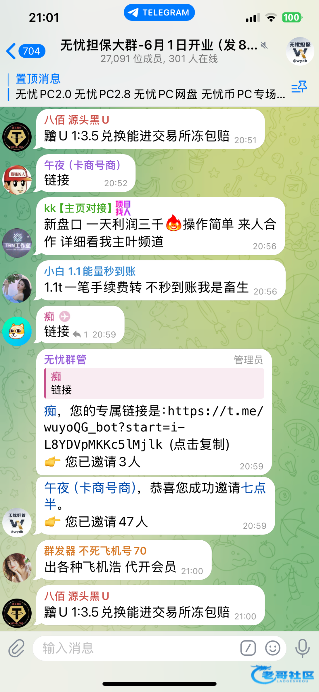 说拉人头的是傻逼吧?其一:这个频道是担保负责人的频道,其二:这个金汇国际是新开的公群,根本就没开推广链接不信的话你去问人家公群老板给不给你公群链接
