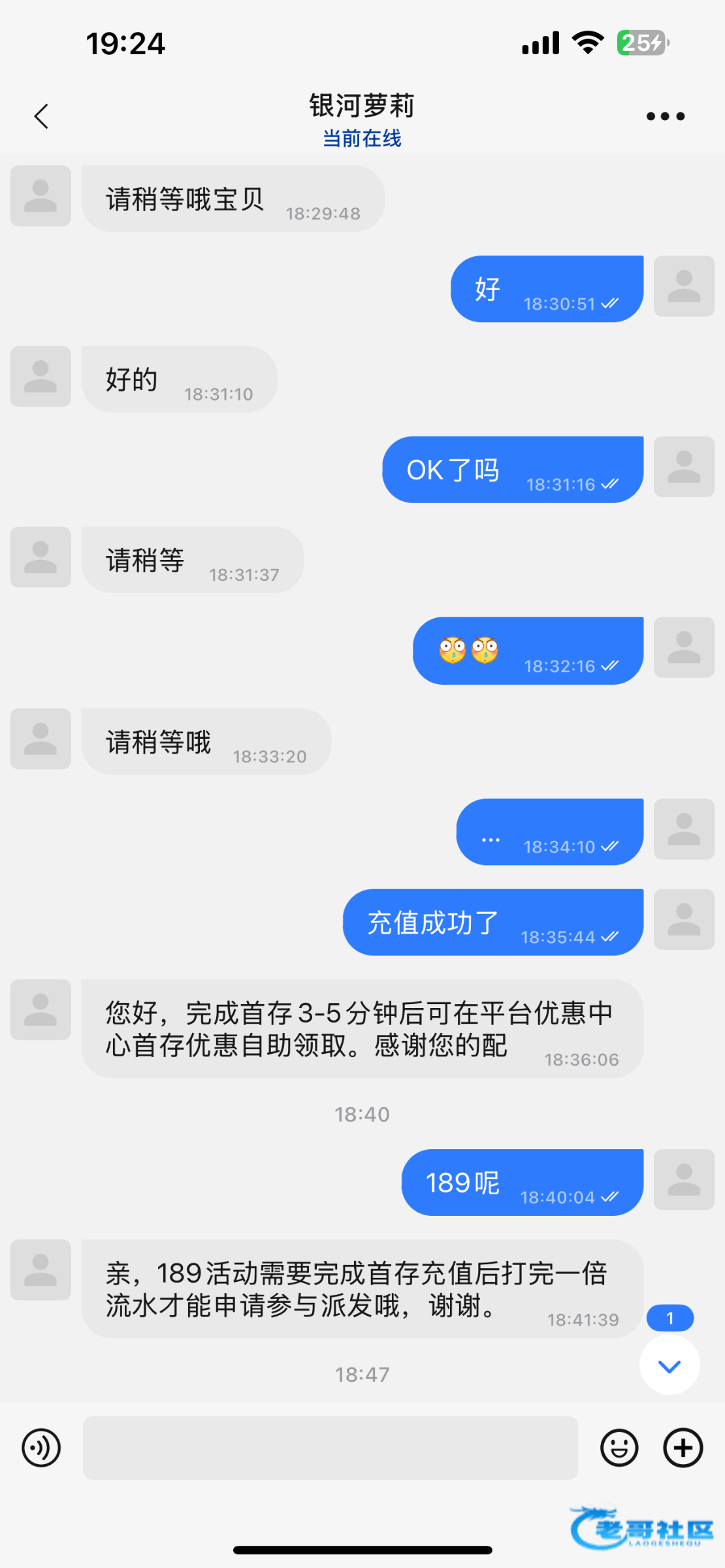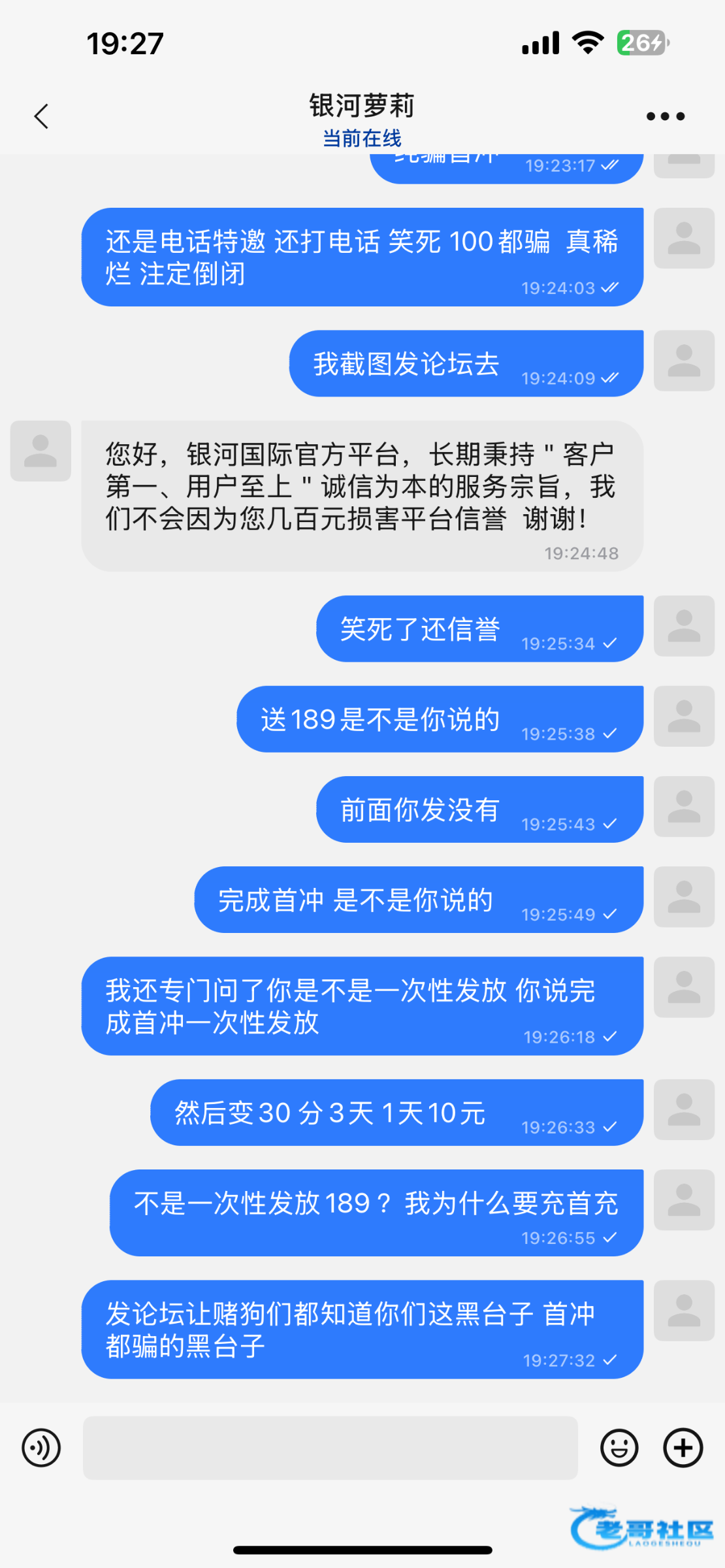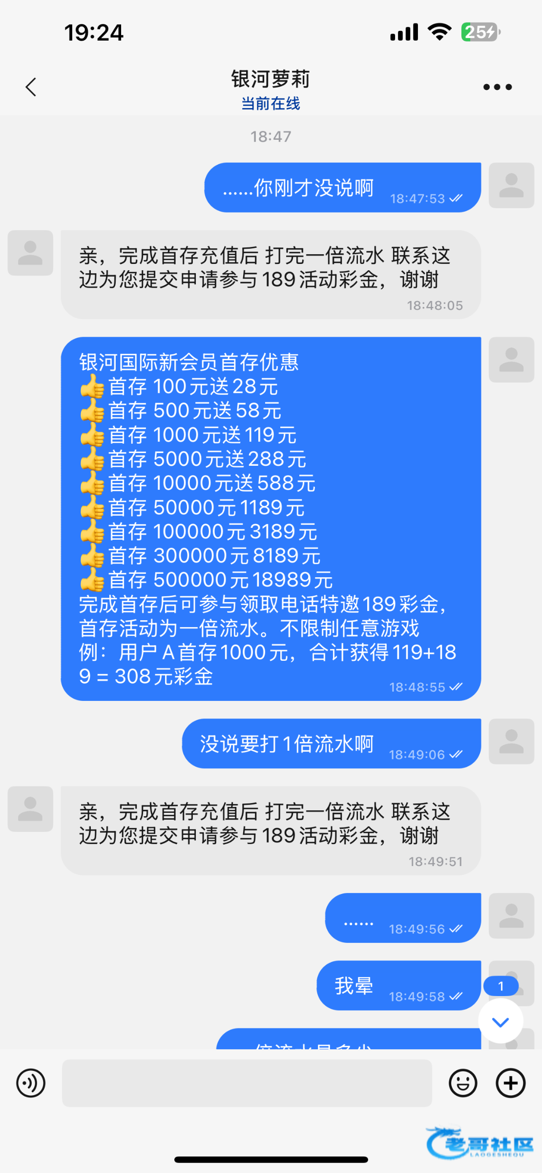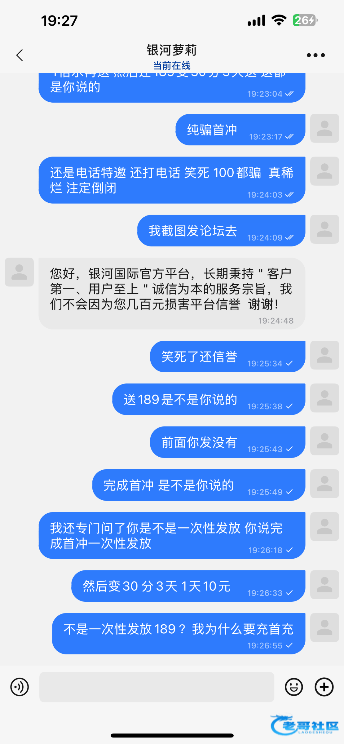 说好的完成首冲一次性送189彩金 变成还要打首冲1倍水 再变彩金30 分3天 1天10块 这么送 真恶心啊