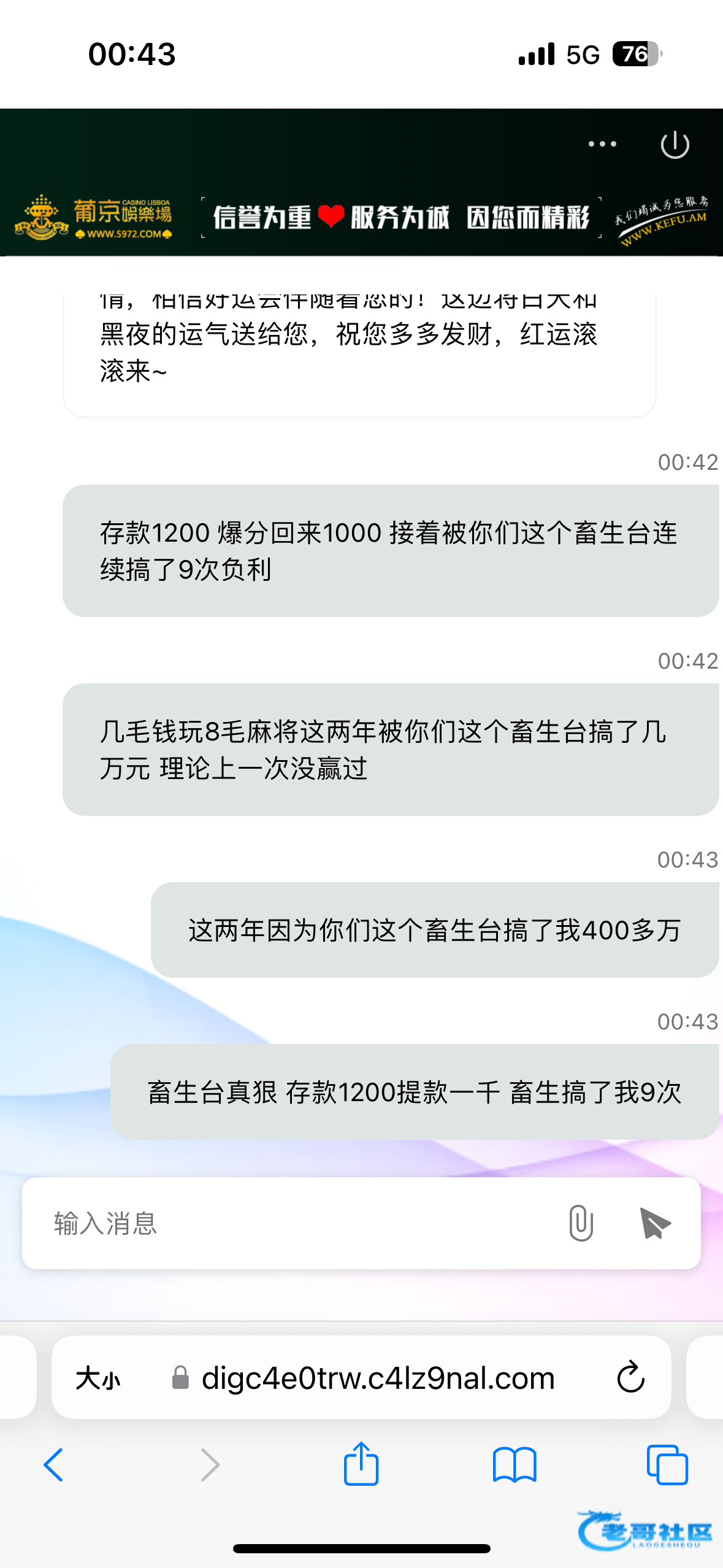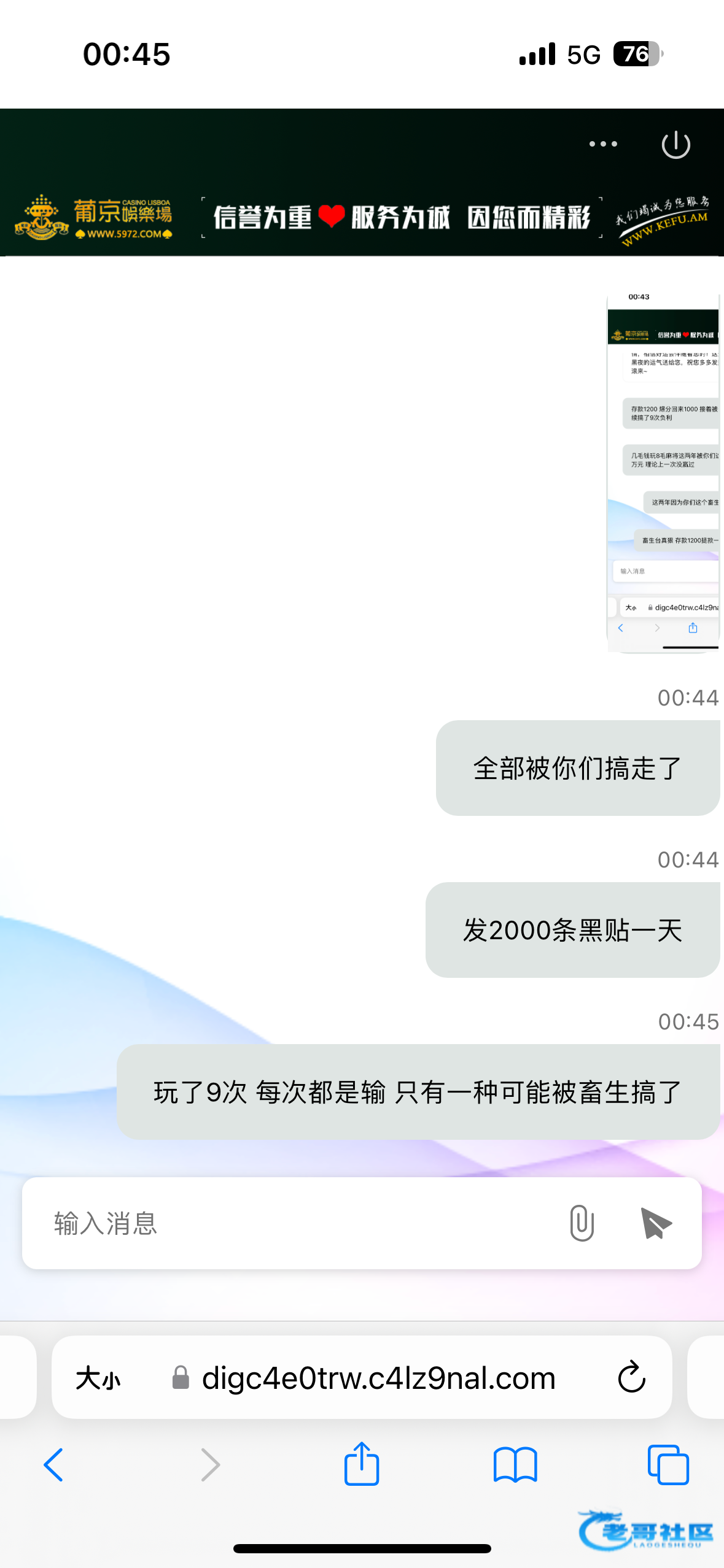 沃日不中奖 ▶ jing223 装你老母,24年的记录还发出来8毛仔,你木知道他的逼能生出来你这种傻逼吗?输了三万给他们不是应该最少vip 5l?记录呢?一天上来就看到你这样废物到处叫唤!影响心情 7月前