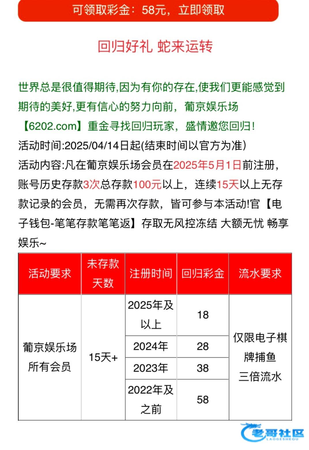 回归彩金有号的上去看看 我领了58 ,6202.com