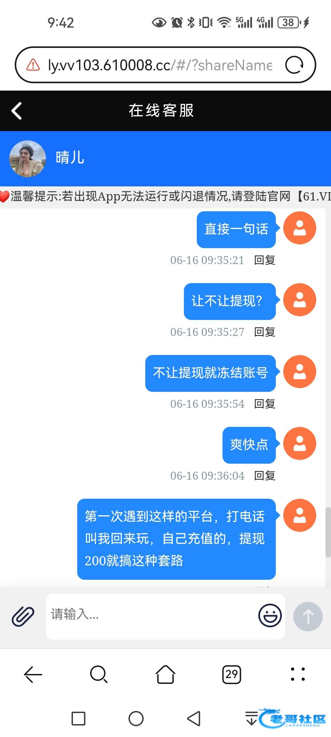 昨天来电说回归彩金,送3元,客服又说可以参加回归存送活动,充值100绒90天没充值的彩金68,充了后又说我历史没有存满3次,不派送,就自己去玩,昨晚快12点了提现200多,迟迟没动静,找客服就说提款人多,耐心等待,一直等到现在没有处理,现在客服又说提款信息验证中,验证完了会通知我,狗日的垃圾平台,这摆明了就是黑了,我就不明白,自己充值玩不给出款,别人白嫖都秒出,这平台真是无语
