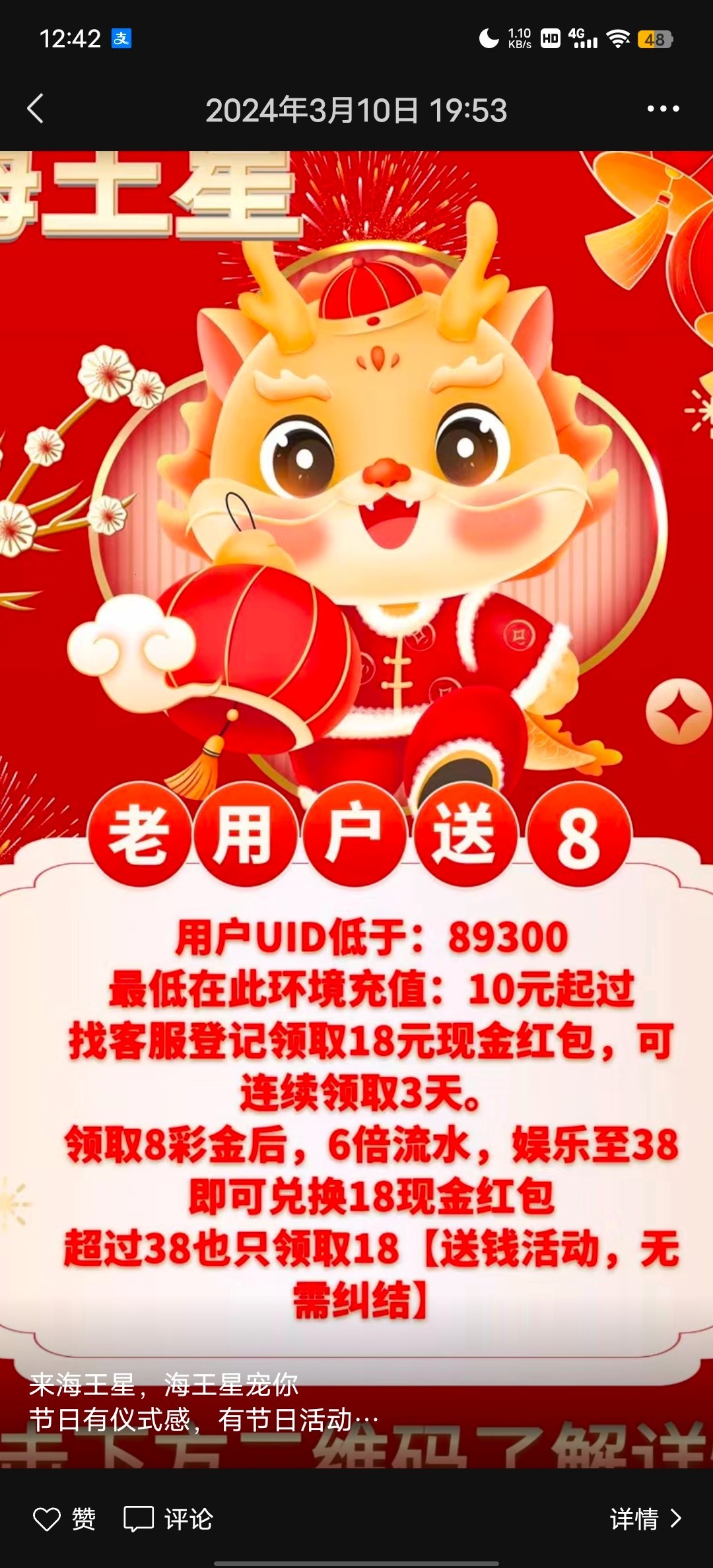 新用户领8老用户也有老用户充值过ID低于89300好像可以联系三天领取18