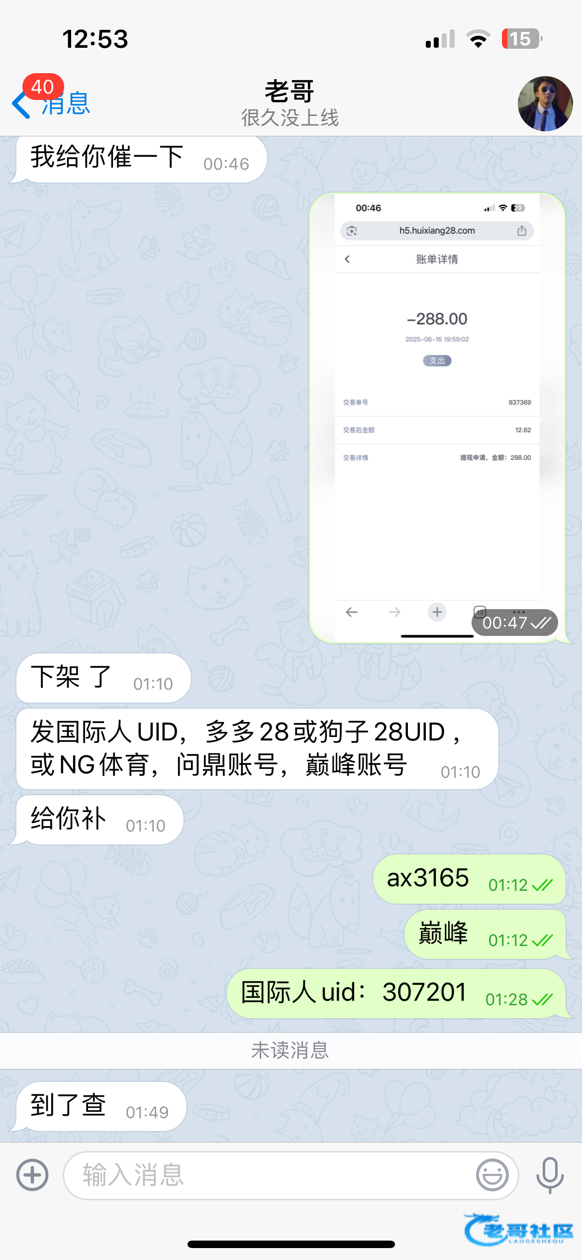 汇想提现国288不到账 找老哥处理给了288提现760老哥牛逼