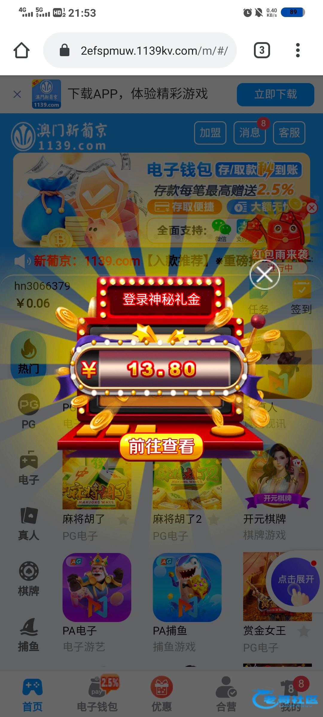 我没打出来,麻将水挺大,最高打到220,心大了一手20送回去了 地址 1139.com